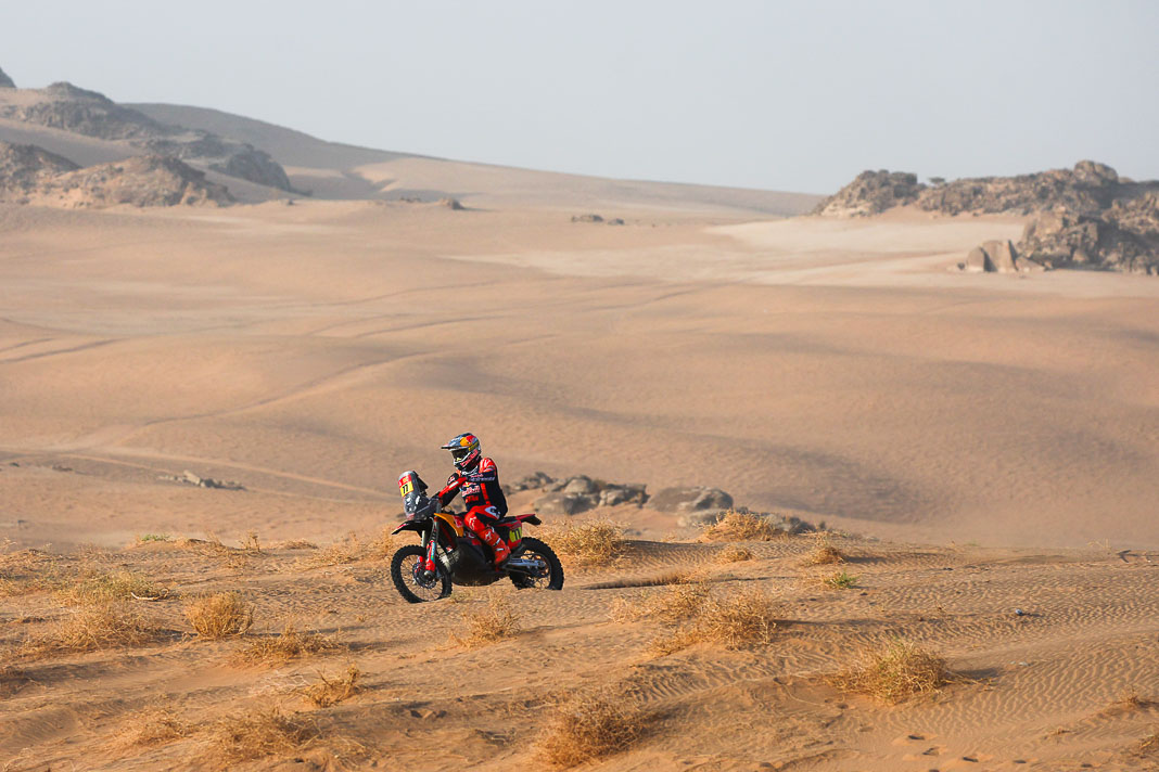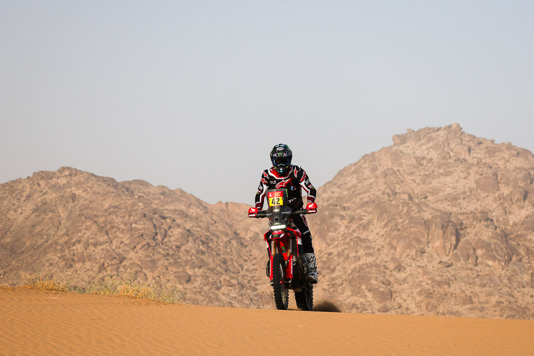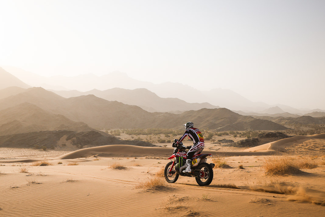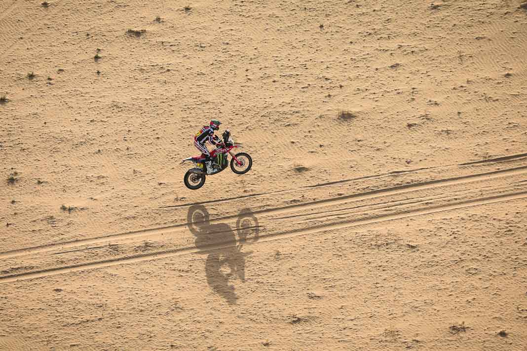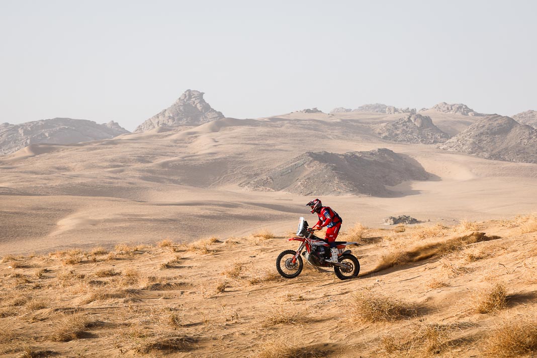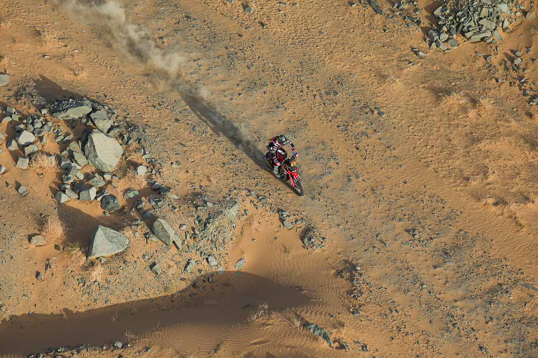 - His plan worked. Yesterday, Ricky Brabec deliberately gave up the lead in the overall rankings to Luciano Benavides. It was not a crazy move but simply a strategic one, allowing Brabec to start six minutes behind his rival this morning, with the gap in the overall rankings limited to 23 seconds. With the American’s technical mastery, this was actually the safest way to secure a comfortable lead before the final stage, making it possible to rechristen tomorrow’s loop around Yanbu ‘Brabec Boulevard’. And that is exactly what happened: with his 13th stage victory and his second this year, the Honda rider not only swallowed up the 23 seconds in question like a shot of Monster energy drink but increased his lead to 3’43’’ over Benavides, meaning a third title is in sight for Ricky.