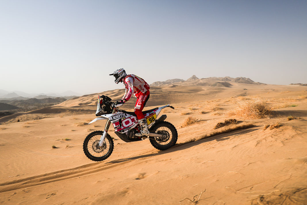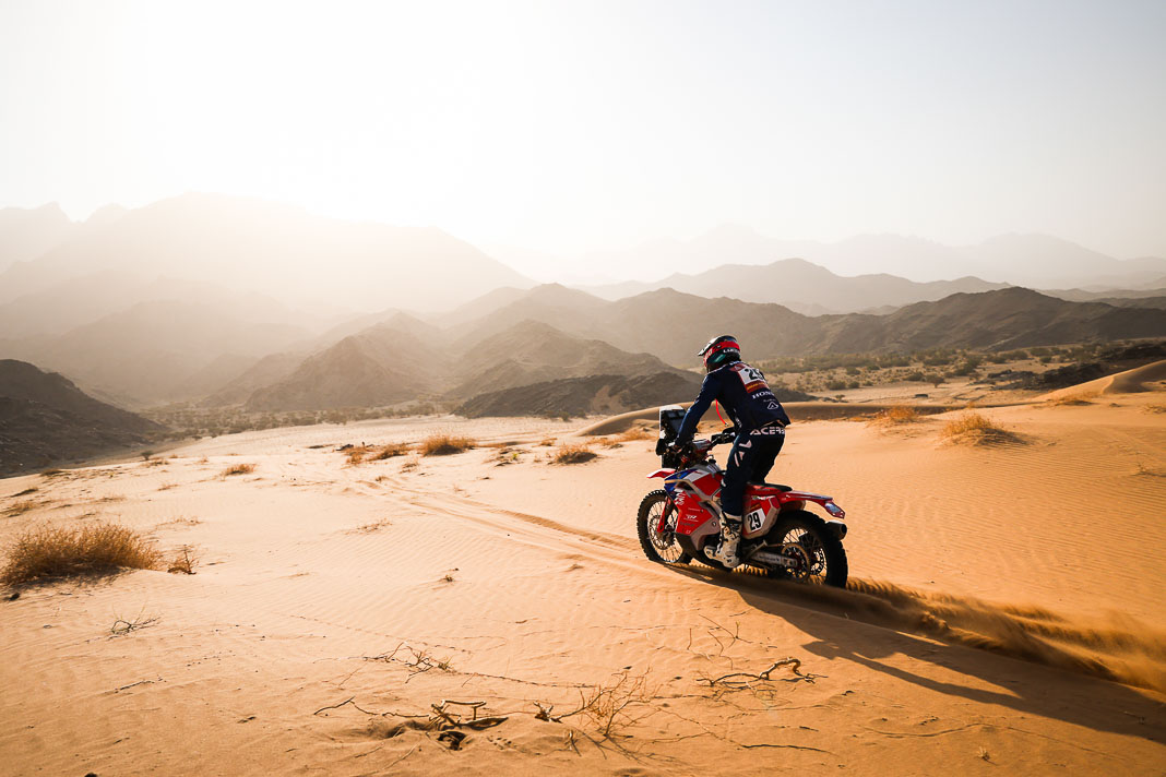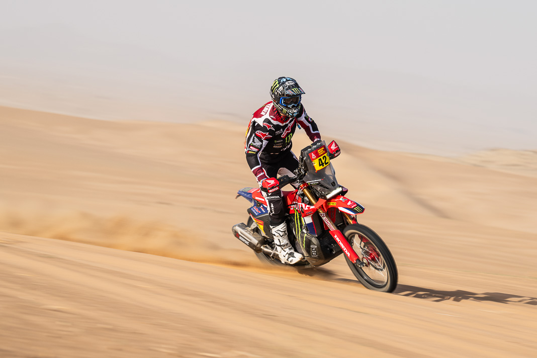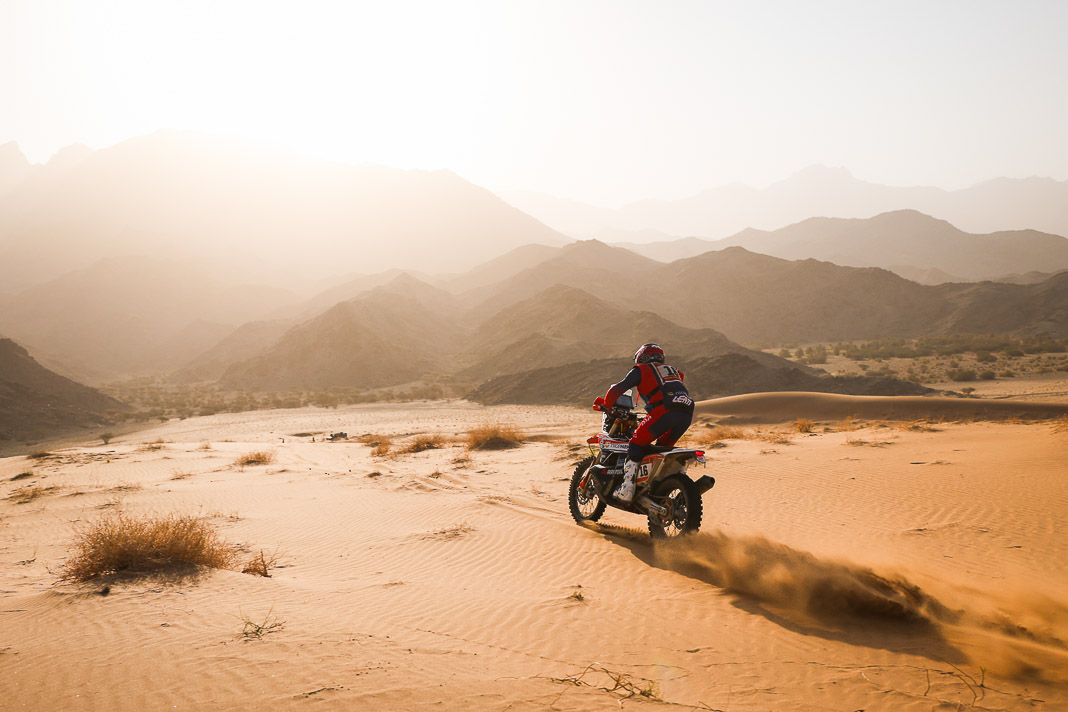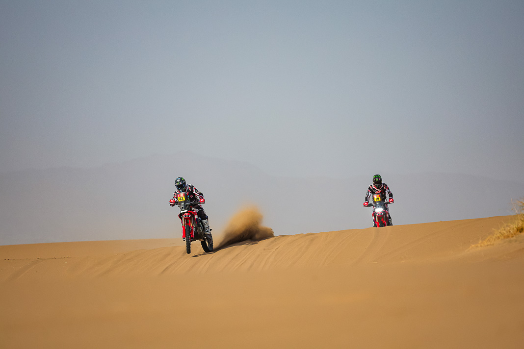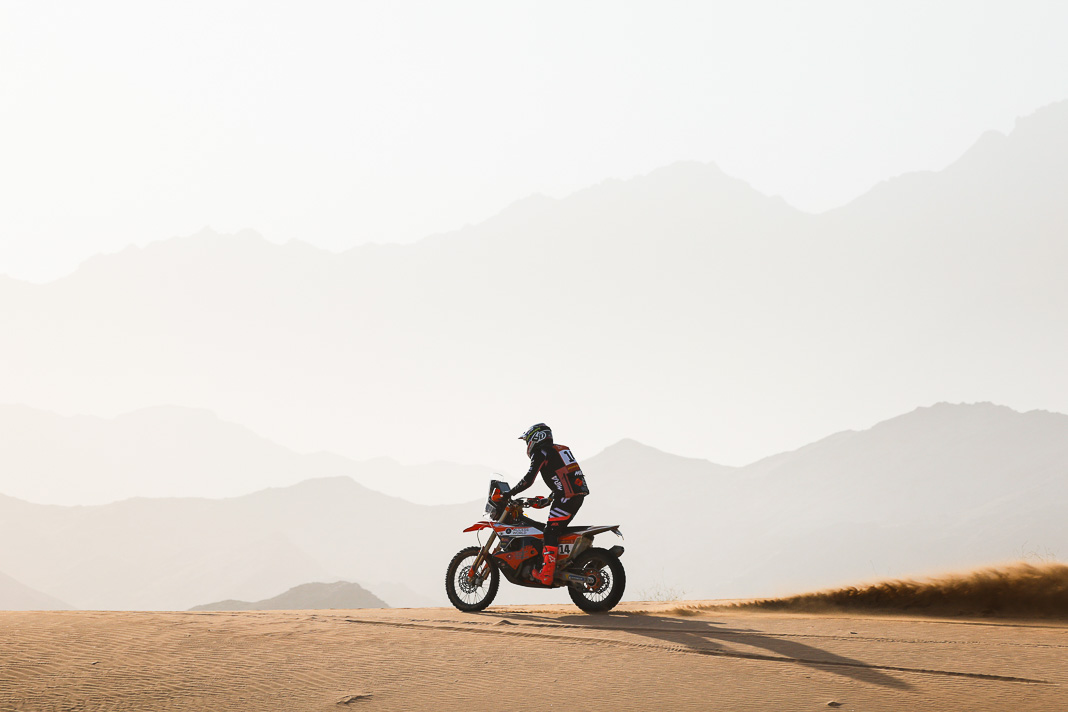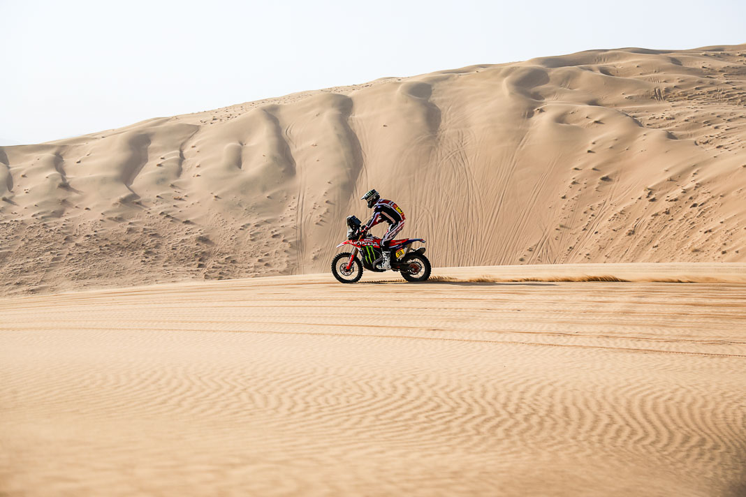 - His plan worked. Yesterday, Ricky Brabec deliberately gave up the lead in the overall rankings to Luciano Benavides. It was not a crazy move but simply a strategic one, allowing Brabec to start six minutes behind his rival this morning, with the gap in the overall rankings limited to 23 seconds. With the American’s technical mastery, this was actually the safest way to secure a comfortable lead before the final stage, making it possible to rechristen tomorrow’s loop around Yanbu ‘Brabec Boulevard’. And that is exactly what happened: with his 13th stage victory and his second this year, the Honda rider not only swallowed up the 23 seconds in question like a shot of Monster energy drink but increased his lead to 3’43’’ over Benavides, meaning a third title is in sight for Ricky.