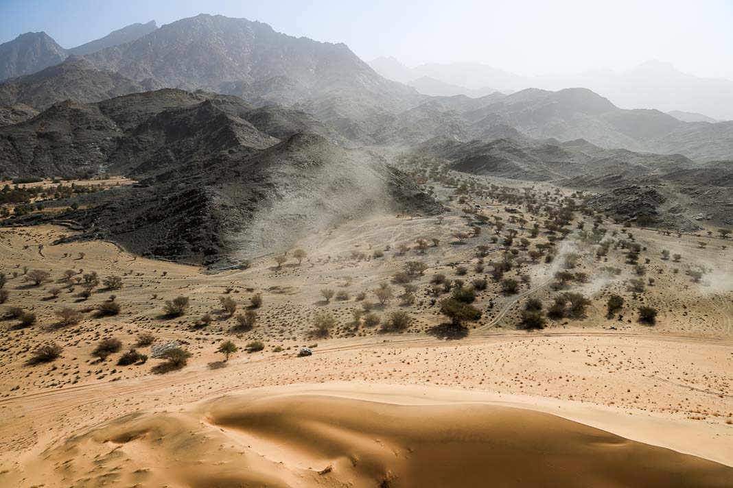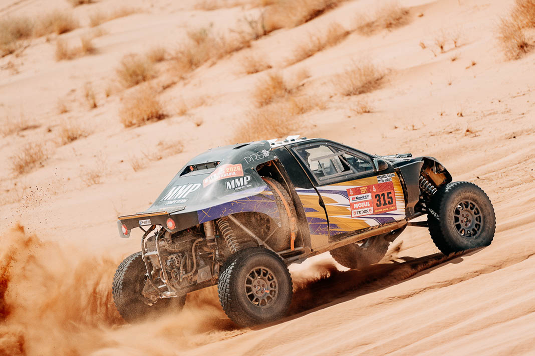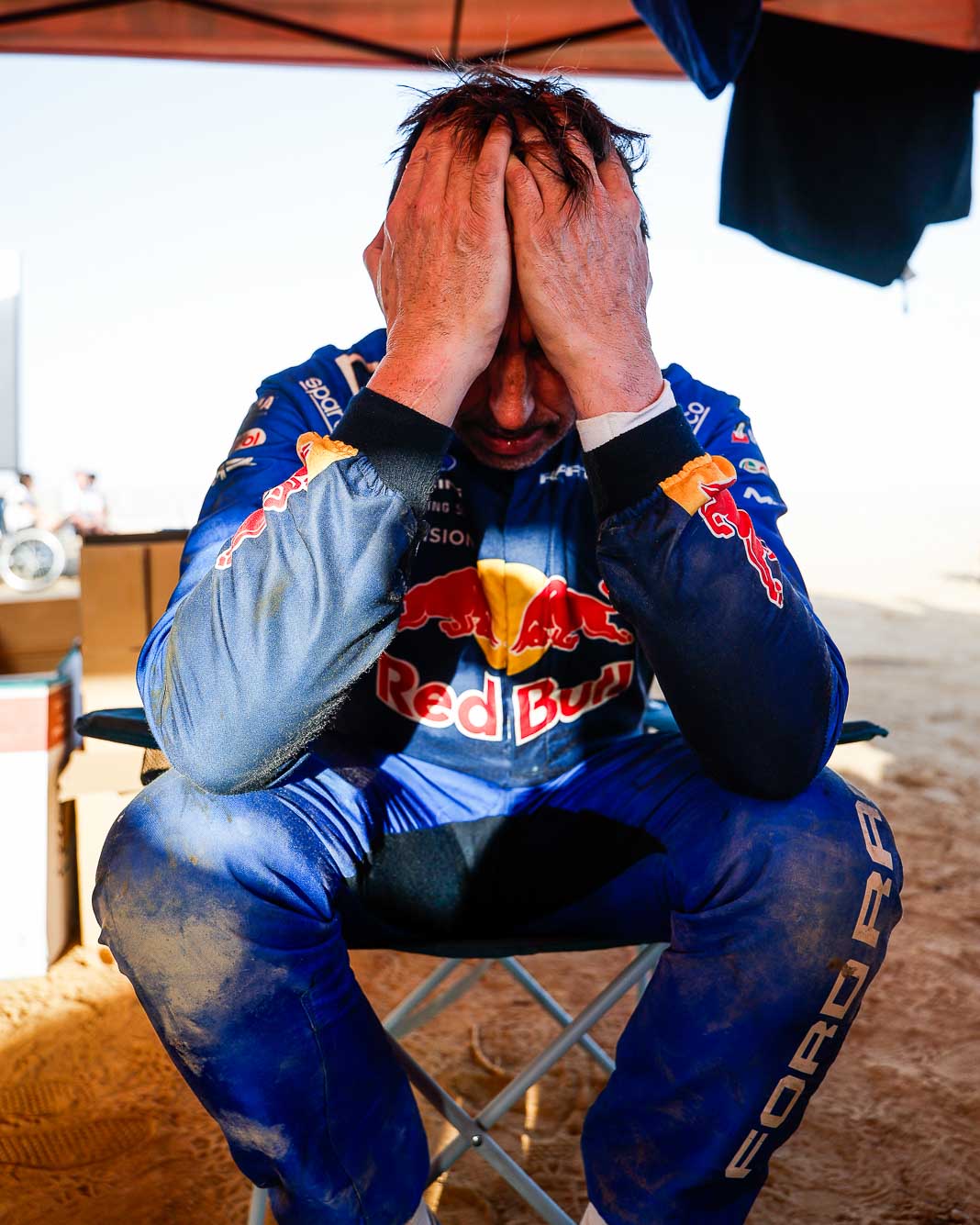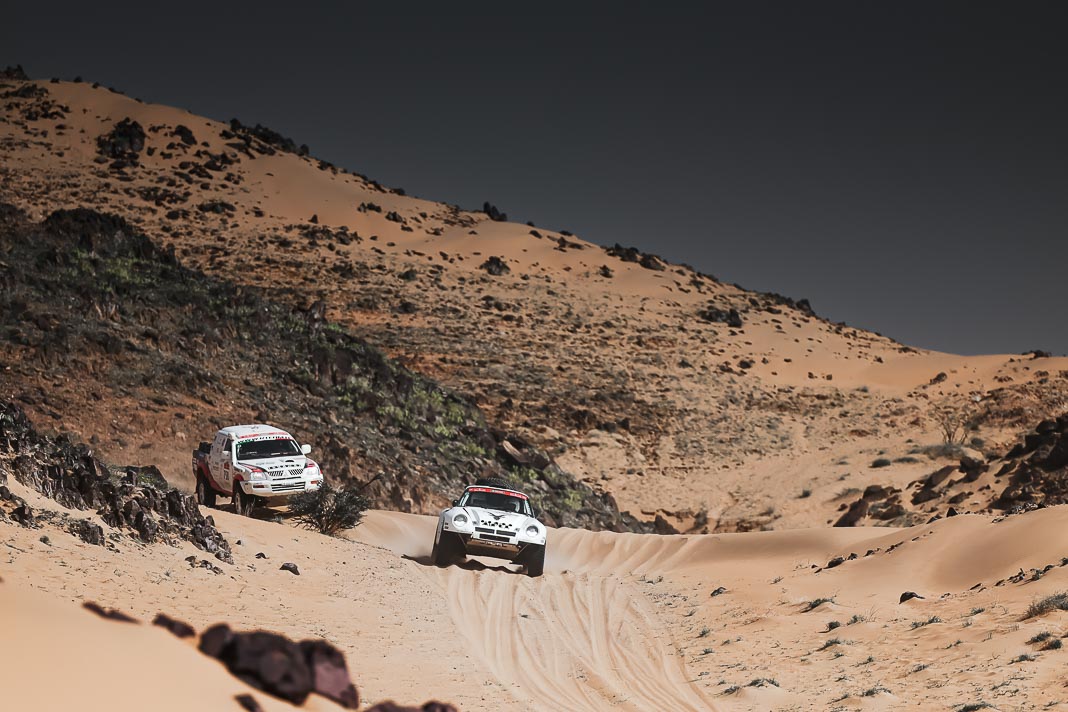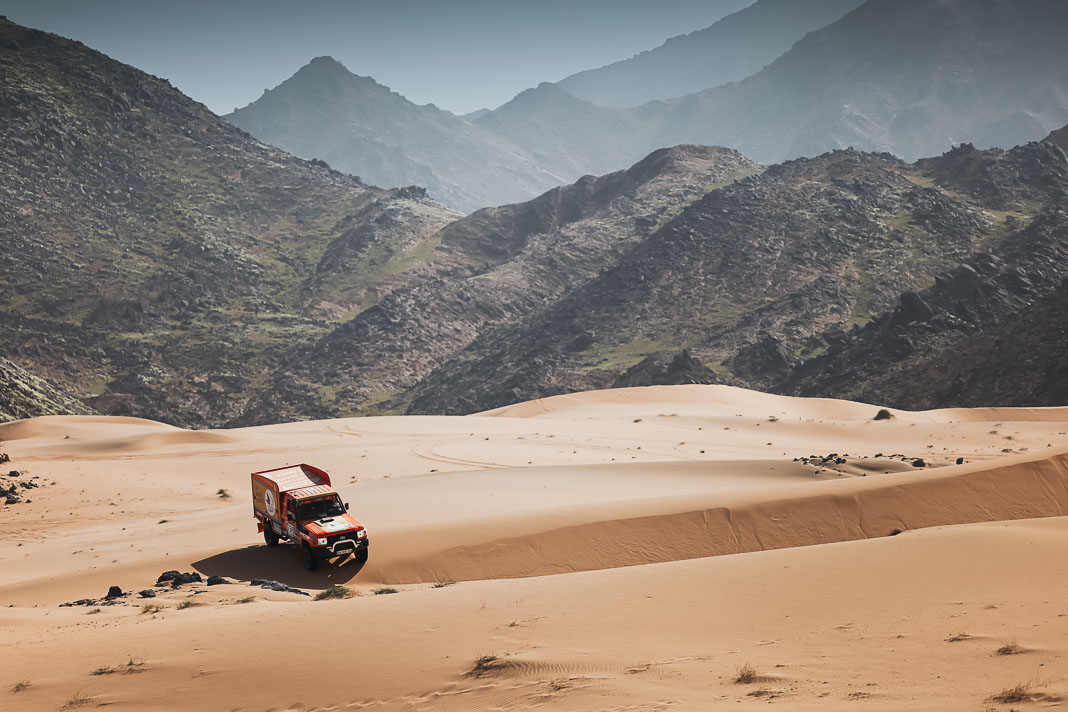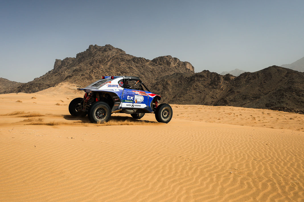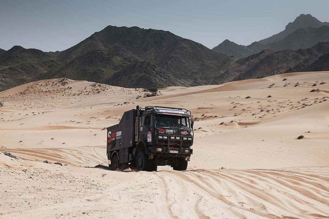 Three Fords stood out yesterday at the end of stage 11: Mattias Ekstrom, Romain Dumas and Carlos Sainz, which was ideal this morning for Nani Roma, who was second overall with a 10-minute lead over his closest rival, Sébastien Loeb. The Frenchman was the 10th driver to start and so enjoyed an ideal position to hunt down his pray, with the hope of swooping in on the Catalan in the overall rankings to put his Sandrider behind the one driven by Nasser Al Attiyah on the eve of the finish. This fact had not escaped the American constructor’s team, which requested Romain Dumas to park up after the first metres of the special and wait for his team leader, so that he could follow him like his shadow throughout the stage. The Frenchman, driving a privately run Raptor, threw himself into this role up until the finishing line, which Roma crossed on three wheels, with his front axle unit dragging along the ground. After completing the special at 14:01’14’’, Nani had 2 hours 45 minutes to reach the bivouac in Yanbu 183 kilometres away. The Ford teams went about carrying out a ‘transplant’ between the two Raptors, which they completed within an on hour. This left Roma with less than one and a half hours to complete the link route before 16.47. Like in a Hollywood blockbuster, Roma ran out of fuel and had to rely on Laia Sanz towing him to the entrance to the bivouac where he clocked in just one minute late. After a few tears to evacuate the stress, Nani realised he had saved his 2nd place on the podium, in spite of a one-minute penalty. Since good news always comes in batches, before this thrilling finale, Mattias Ekstrom had managed, after opening the special, to finish with a time faster than Loeb’s, placing his Raptor on the overall podium 29 seconds ahead of the Dacia. On returning to the shores of the Red Sea, although they surfed on the razor’s edge, Ford did much better than avoid failure…