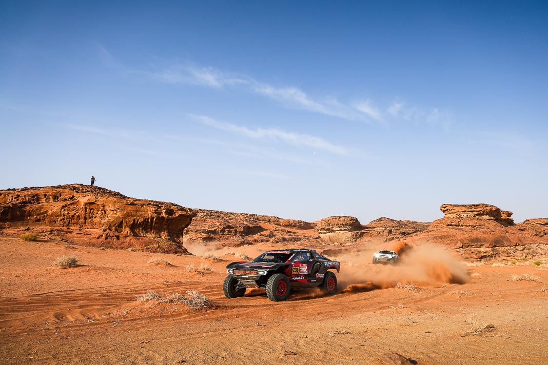 - The Toyotas and Dacias are perched at the summit of the ranking, but the Ford Raptors remain within striking distance after making a splash yesterday, The American Mitch Guthrie flopped at the front of the field, haemorrhaging almost 44 minutes, but Mattias Ekström, third at 13′, and Carlos Sainz, fourth at 15′53″, are in a great position going into the latter half of the marathon-refuge stage, which they will begin in twelfth and thirteenth position.