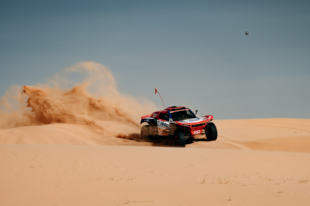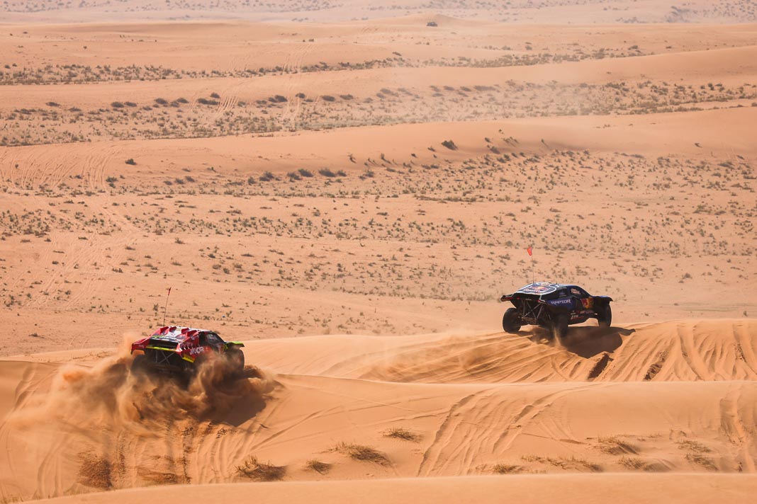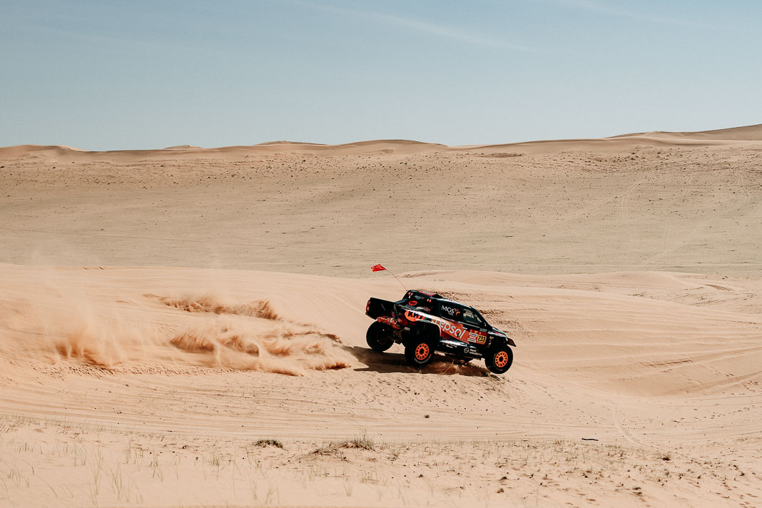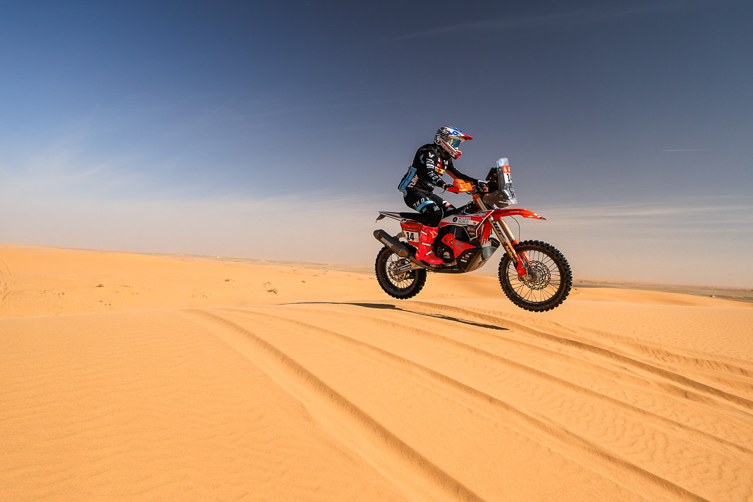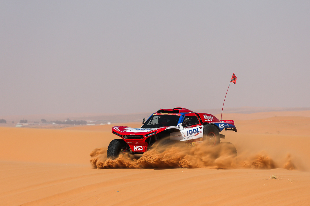 - Daniel Sanders was on a roll on the first big sandy stage leading to Riyadh just before the rest day. Starting from Hail in third position, the defending champion swiftly caught Nacho Cornejo and then his teammate Luciano Benivades on his way to finishing the special stage alone and gobbling up a considerable chunk of the bonuses on offer to the opener (2’40’’), providing him with sufficient time to pull away in the overall rankings. However, the Australian, probably got carried away by his enthusiasm and neglected to respect a speed limit, which was a mistake that will cost him a six-minute penalty.