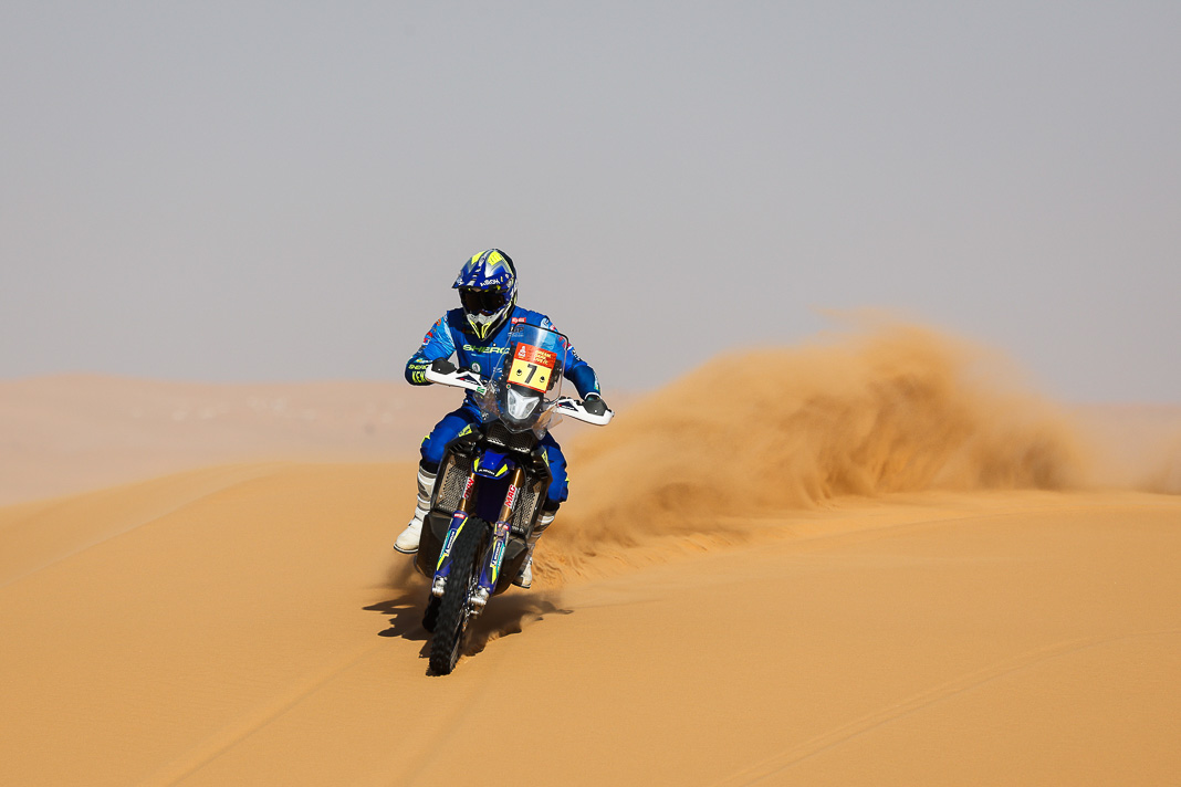 If there was one competitor especially intent on reaching Riyadh in the lead, it was Yasir Seaidan. The man from the Saudi capital, who led during stages 3 and 4, lost his place to Pau Navarro who led by 4’26’’ on the departure from Hail. On a stage entirely made up of dunes today, Yasir Seaidan wiped out his deficit and regained leadership of the race after 253 km by one second in front of the Spaniard. Fifty kilometres further on, he lost three quarters of an hour after being forced to stop and work on his machine. Dania Akeel, his countrywoman, picked up the torch but the Saudi driver fell just 38’’ short of stage winner Ignacio Casale. In the overall rankings at the halfway point, Yasir Seaidan has dropped off the podium which he had occupied since stage two. Following the premature exit of Yazeed Al Rajhi and Dania Akeel’s mishaps that have deprived her of the fight for the podium, Yasir Seaidan is this year’s last hope of a Saudi title.