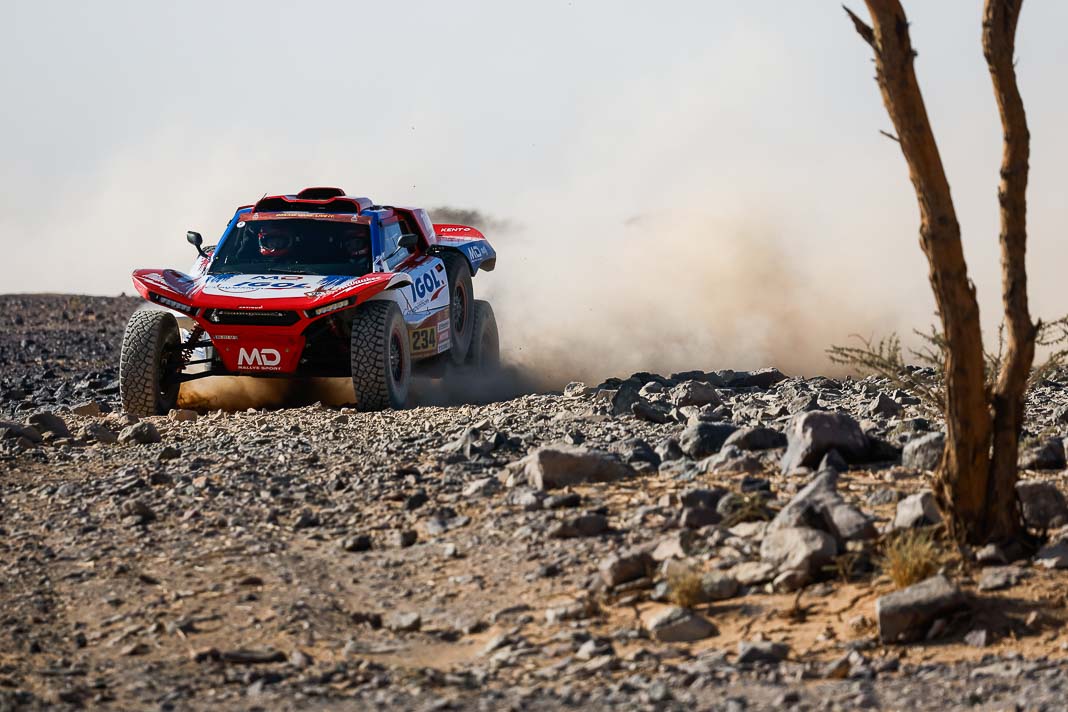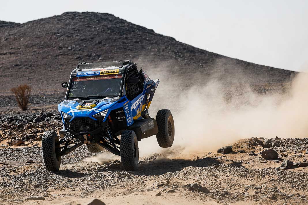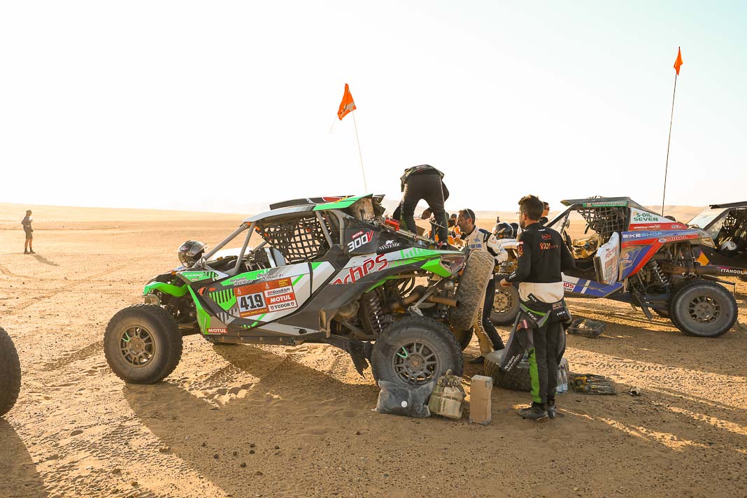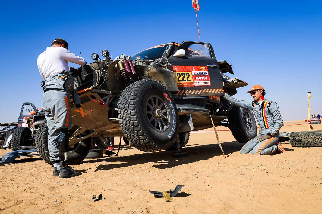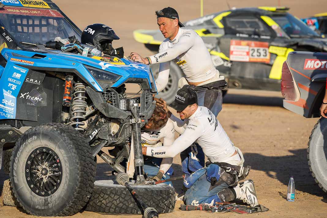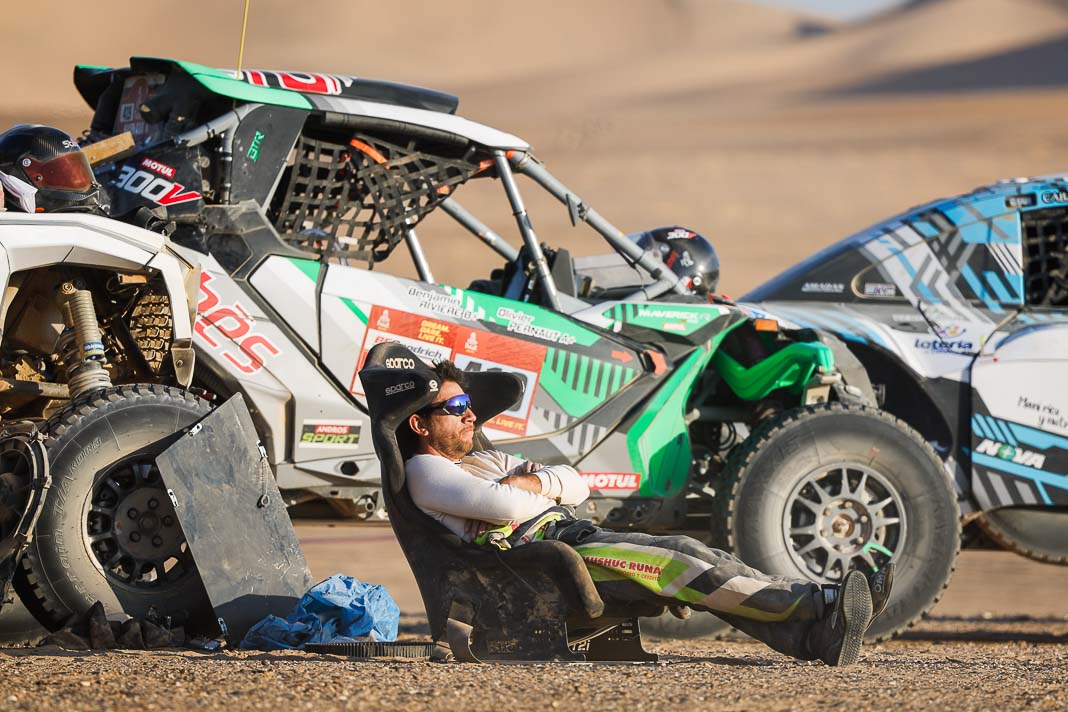 Today, the Spaniard who helped to create Vertical Motorsport played his role to perfection when catching up with “Nico and Valen” who had ground to a halt due to a damaged radiator. Oscar sacrificed his result for his champion team-mate who was still in second place in the overall rankings this morning, 2’02’’ behind Pau Navarro. After a vertical drop down the leader board, the couple is now faced with a deficit of more than one and a half hours in the overall rankings.