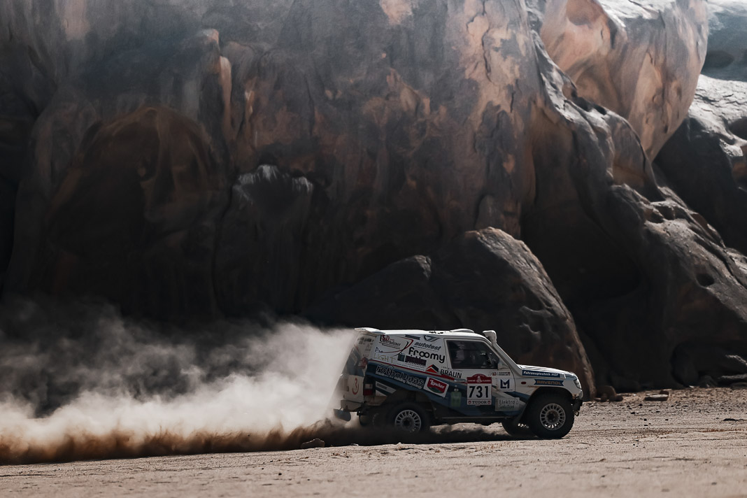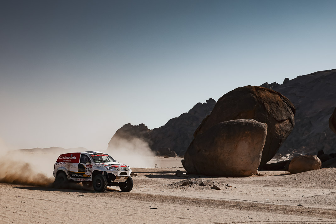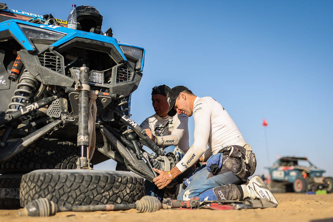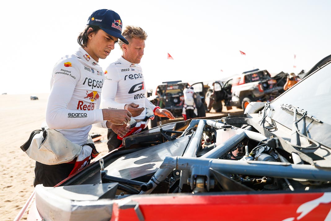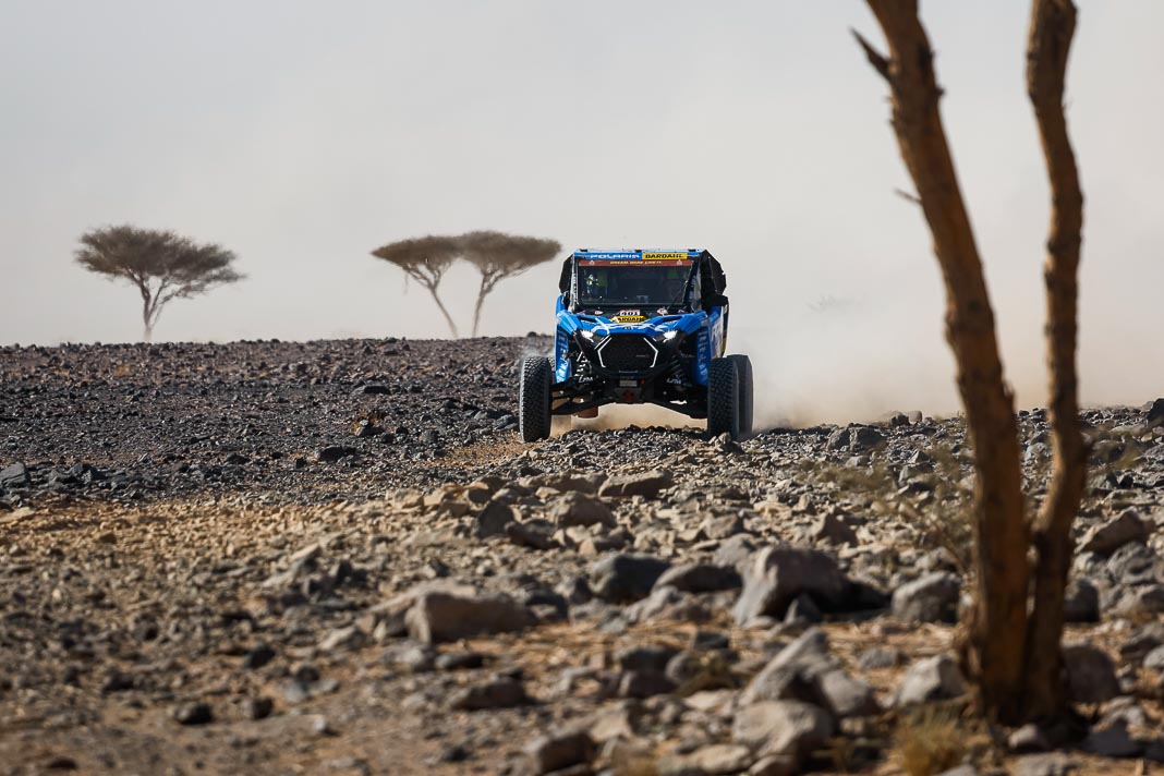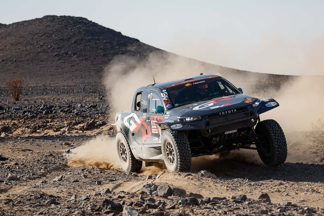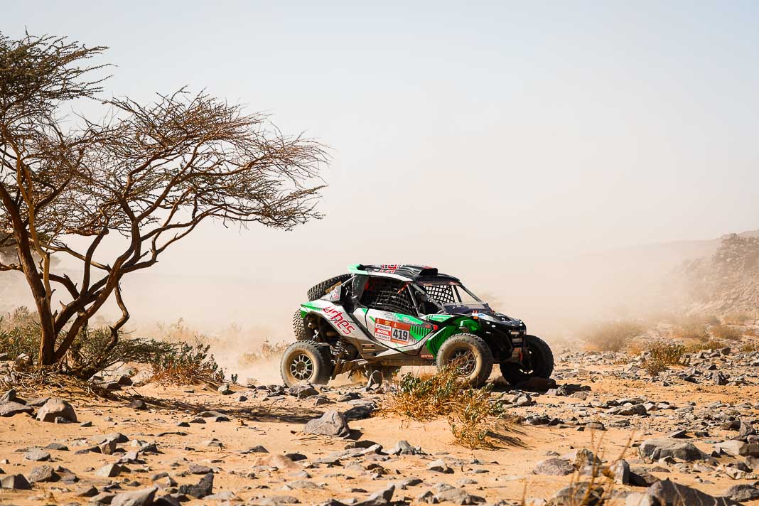 Today, the Spaniard who helped to create Vertical Motorsport played his role to perfection when catching up with “Nico and Valen” who had ground to a halt due to a damaged radiator. Oscar sacrificed his result for his champion team-mate who was still in second place in the overall rankings this morning, 2’02’’ behind Pau Navarro. After a vertical drop down the leader board, the couple is now faced with a deficit of more than one and a half hours in the overall rankings.