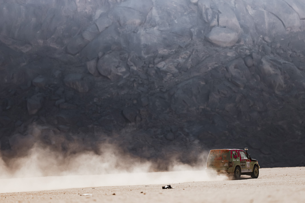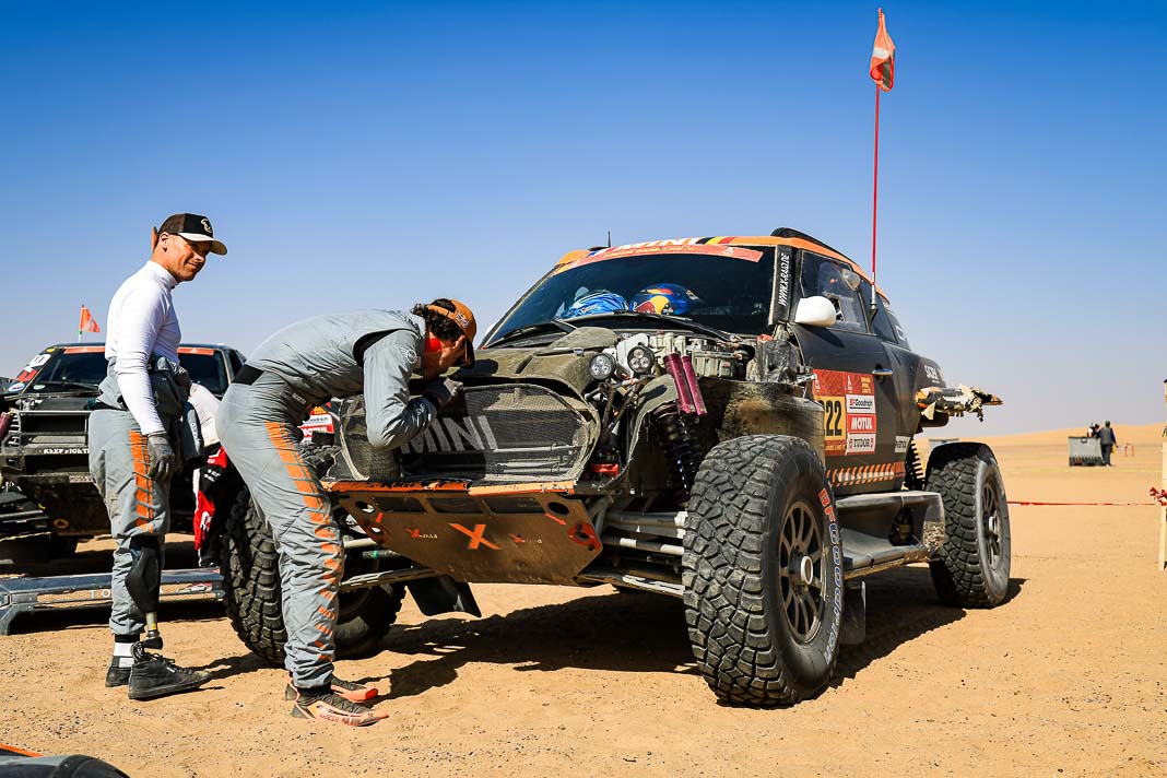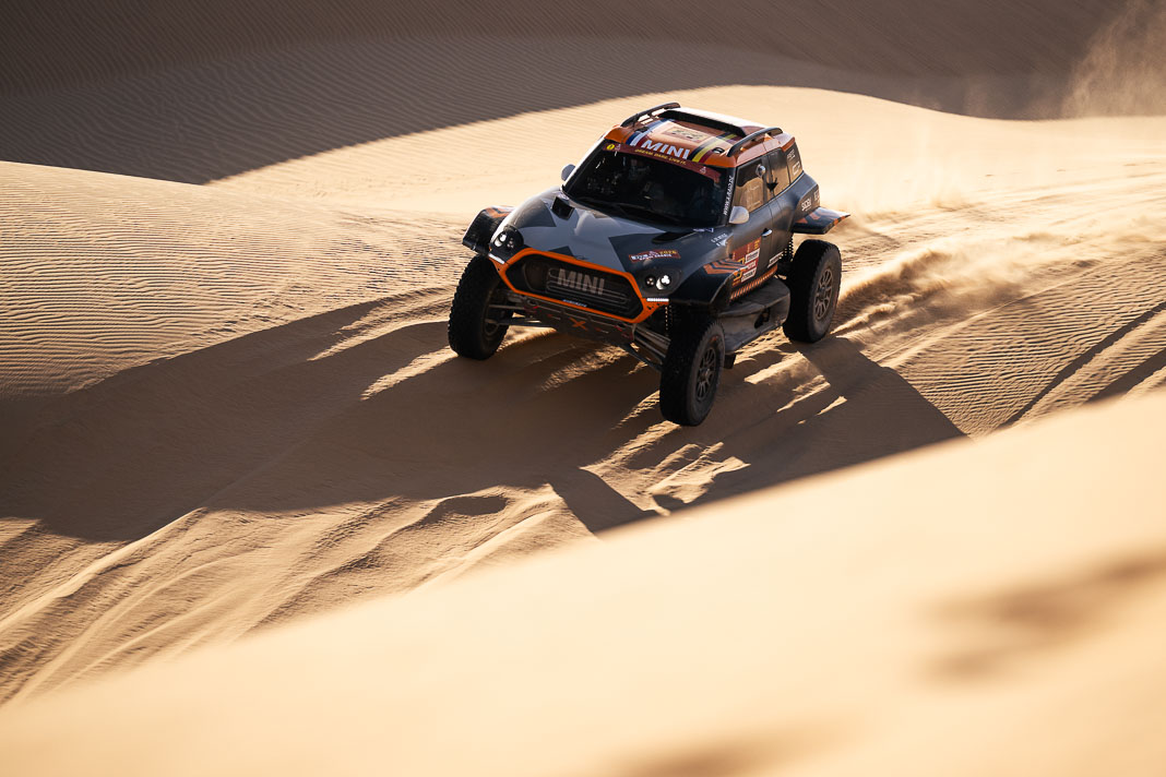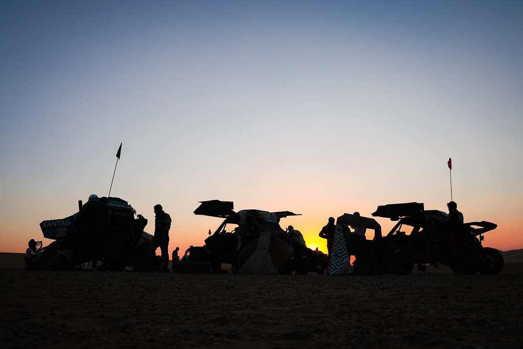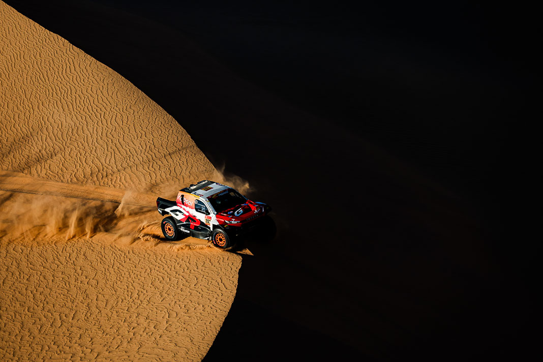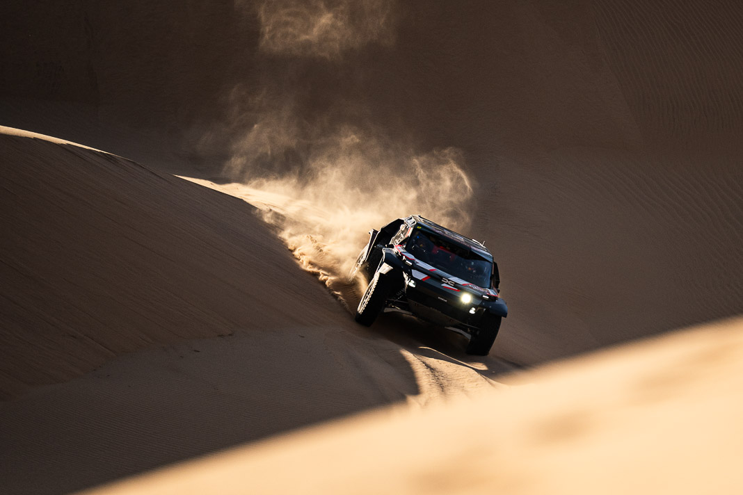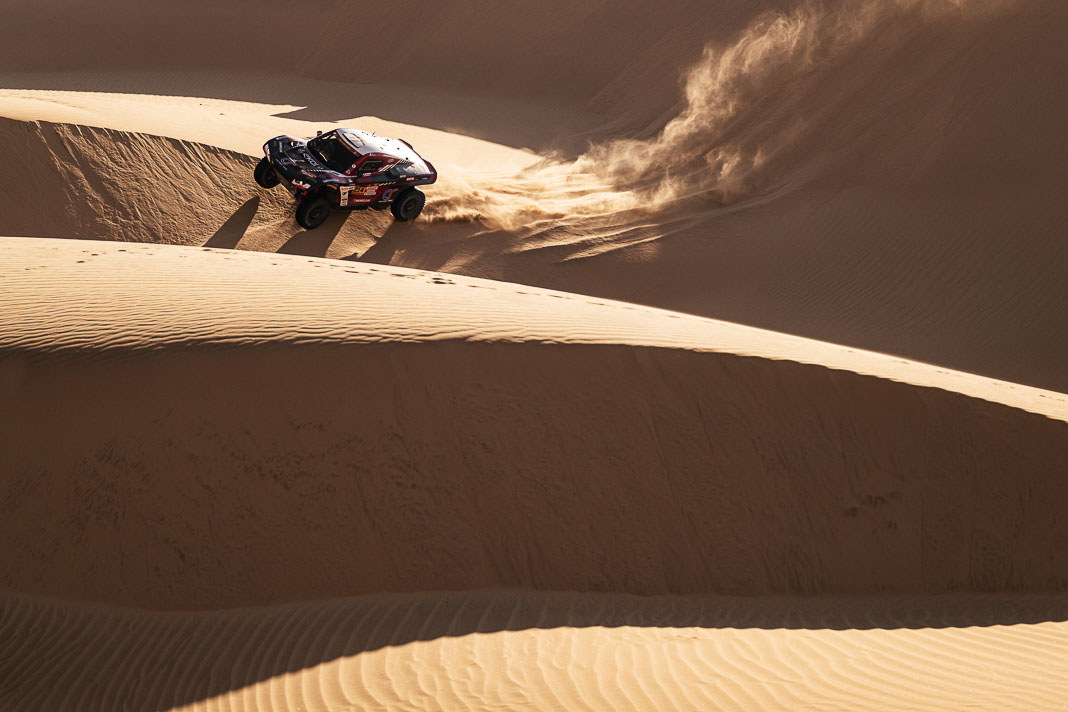 • The race hierarchy remains as open as ever so close to the rally’s finale. However, while they are not completely out of the running, two of the day’s losers can be clearly identified. Henk Lategan owes his survival in the top four (occupying 4th place, 6’13’’ behind) to the pit stop that was set up after 183 km, where he was able to have his power steering repaired, but this 14-minute stop cost him his place on the provisional podium. The fall from grace was even more damaging for Mattias Ekstrom, who left Wadi in 2nd place in the overall rankings but will sleep in his tent tonight in 5th place, 11’19’’ behind the new leader after a major navigation error.