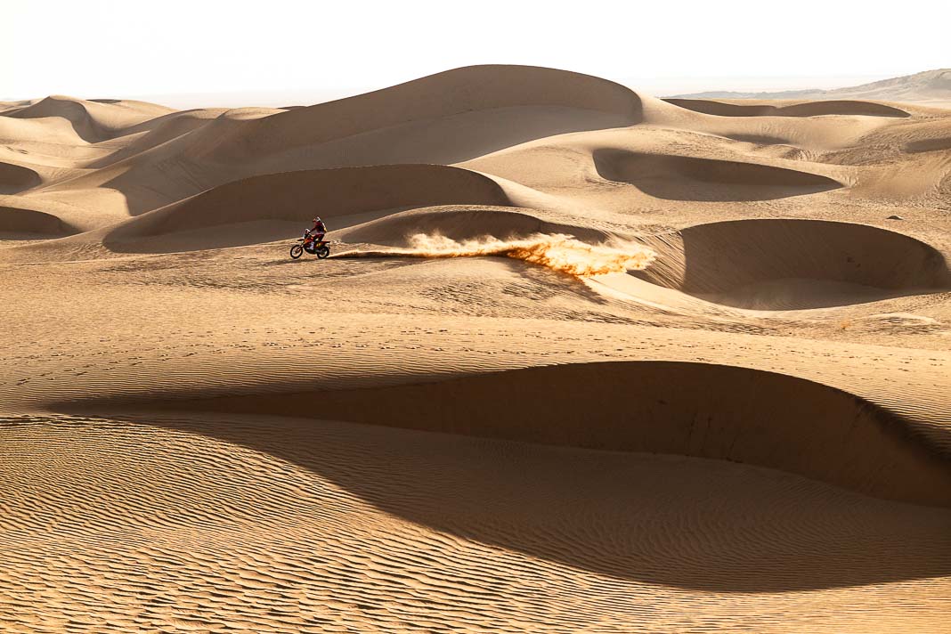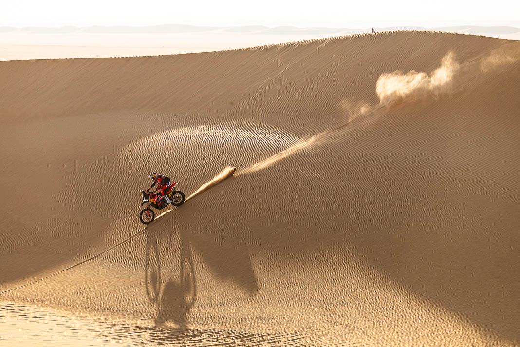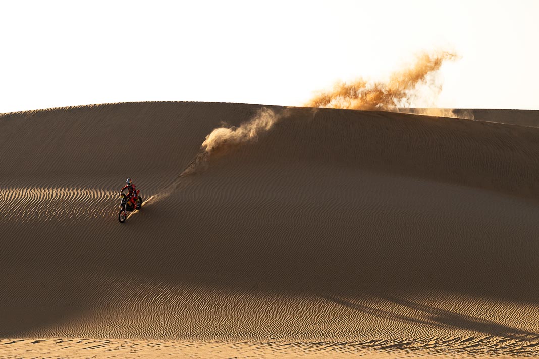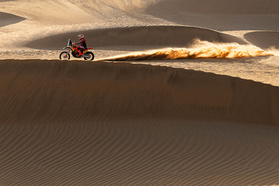 • The Australian KTM rider has, as a result, regained the lead in the overall rankings, where he now has a 6’24’’ advantage over his American rival Ricky Brabec. However, this margin is not particularly comfortable ahead of the second leg of the marathon-refuge stage, on which the Honda rider will start three minutes behind him and where the route including challenging dunes may hold some surprises in store.