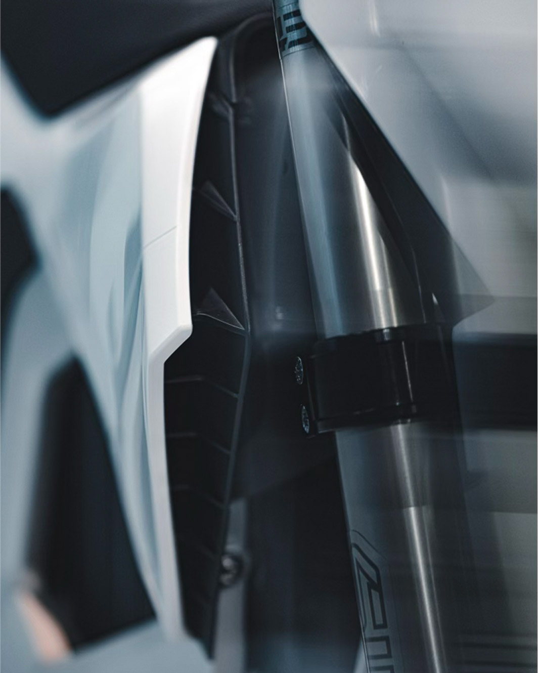 - 46 Sirris Enduro shock absorber with 285 mm travel (Optional: 50 Race shock absorber with 320 mm travel)