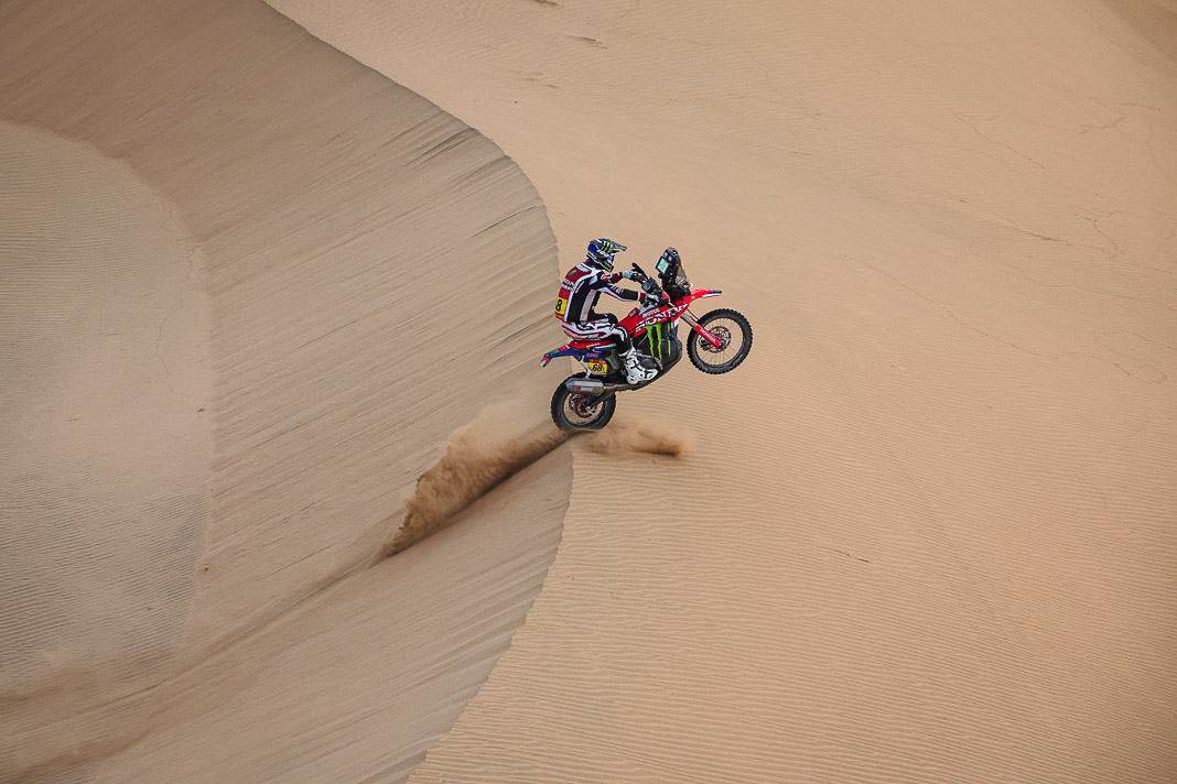 Toni Mulec is racing in his fourth Dakar. After cracking the top 25 in 2023 and finishing fifteenth and then thirteenth in the last two editions, the amateur rider is hungry for more. The Slovenian stands tenth overall as the top-ranked privateer and is closer to the Rally2 lead than at any other point since the race left Yanbu. Preston Campbell, the newly minted Honda factory rider, has held the top spot ahead of Mulec since stage 6. The BAS World KTM rider slashed his deficit from 17′28″ to 2′31″ today, triggering a red alert for the American. The fight for the second division of the motorbike category will come down to a battle between these two, with the rest of the field more than 1 h 45 back. Campbell is discovering the Dakar and is a shoo-in for top rookie honours. Until now, his team had encouraged him to ride conservatively. A change of strategy may be in order, as Mulec is taking no prisoners as he readies himself to board the HRC ship.