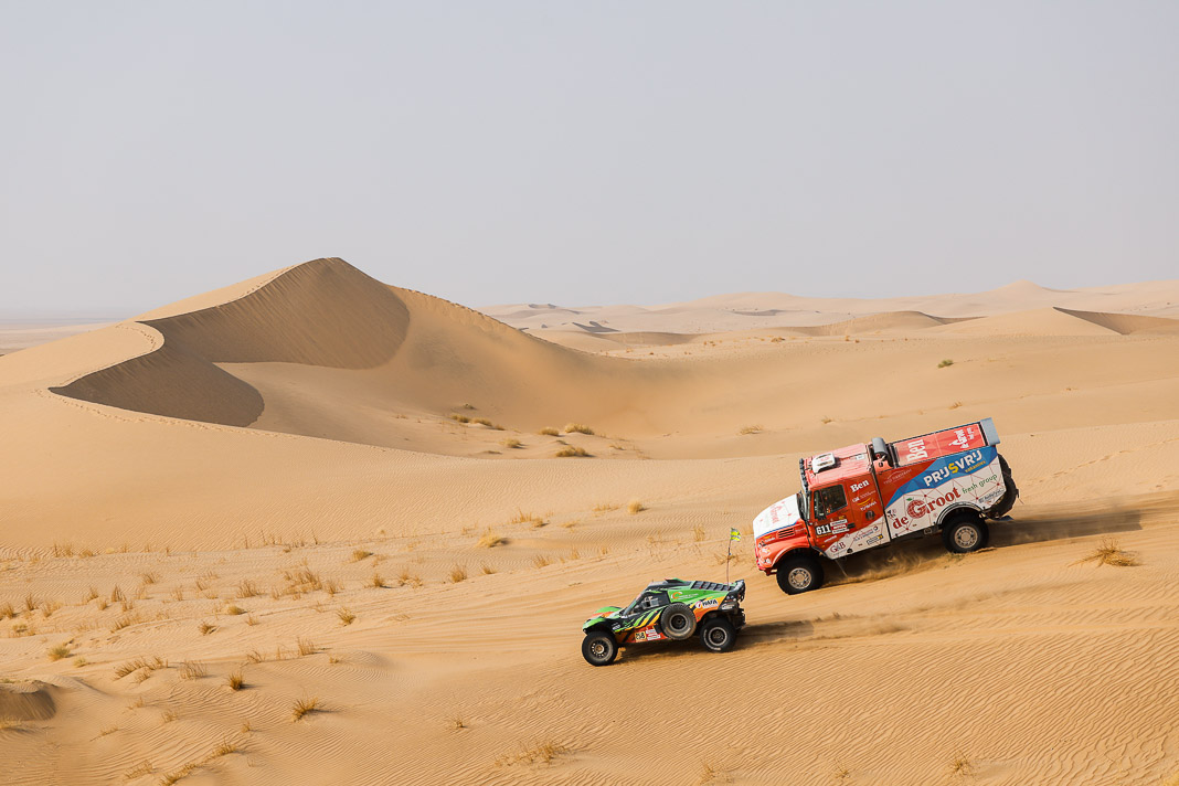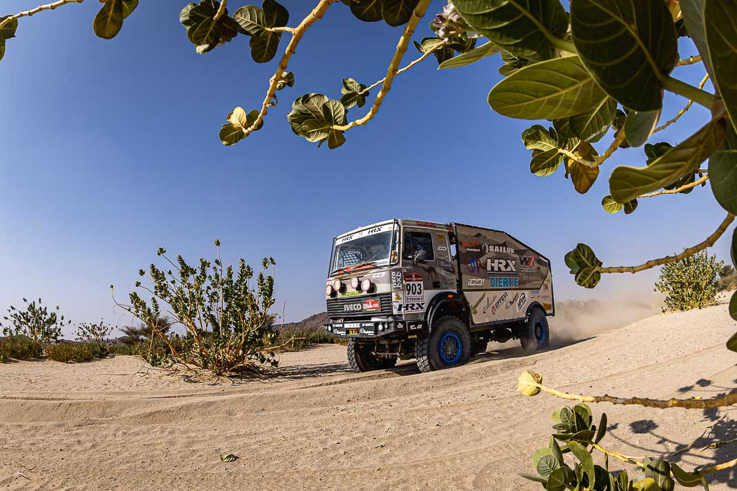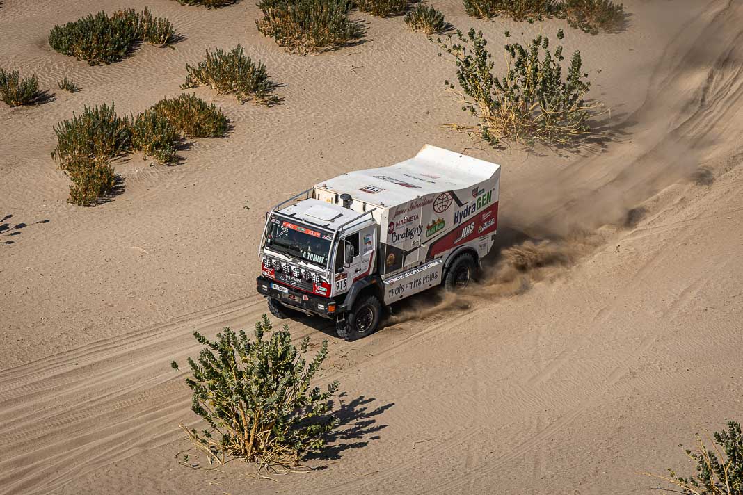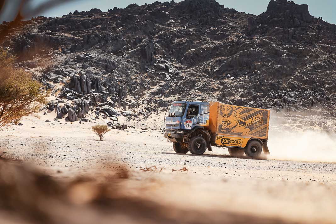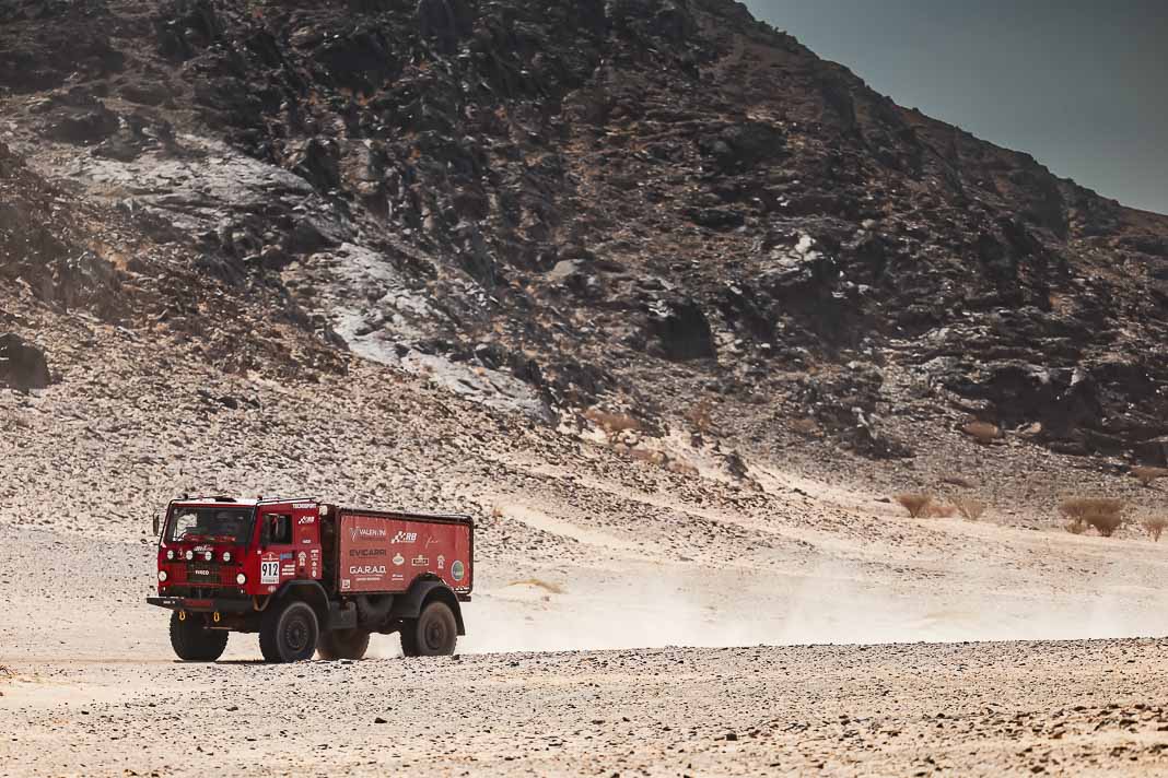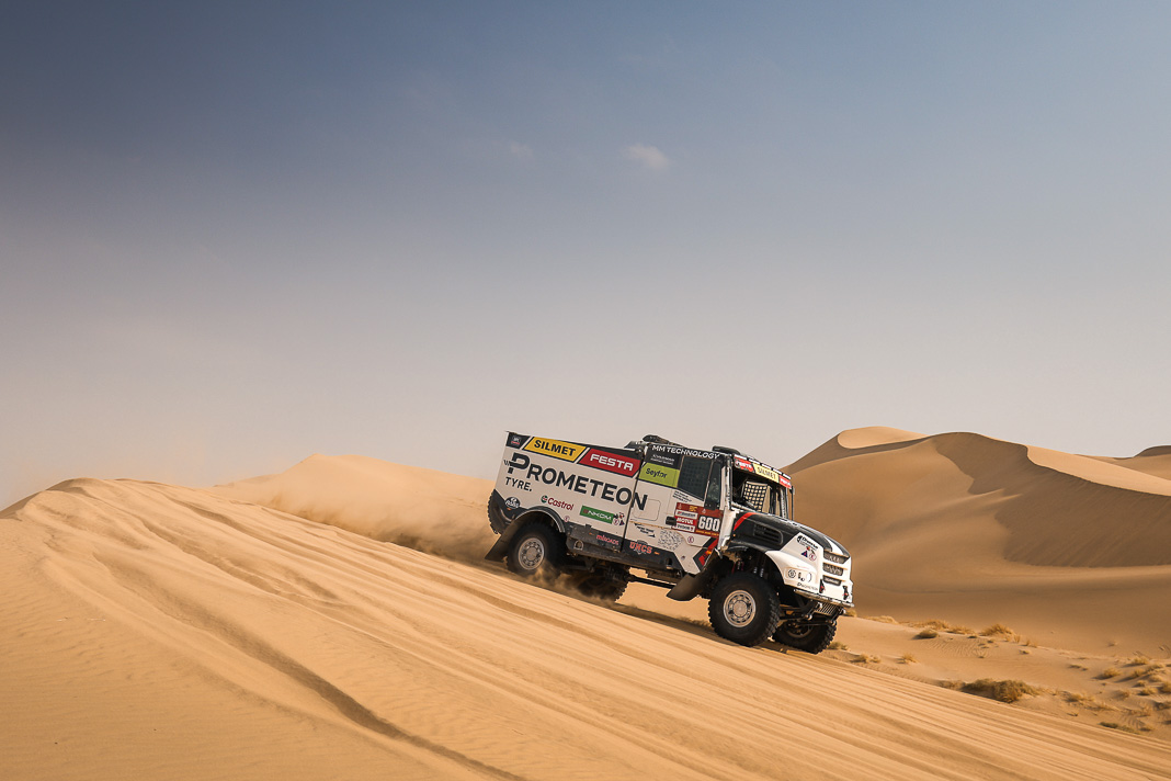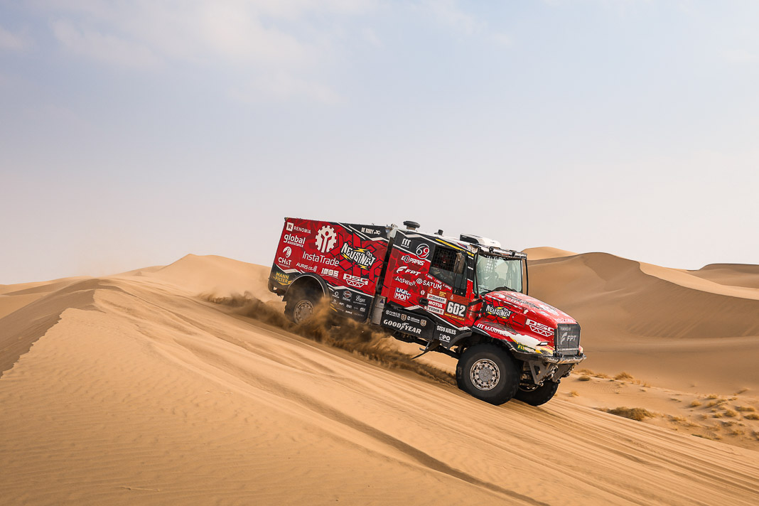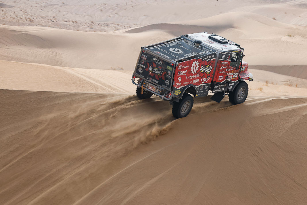 Van den Brink Jr had climbed one rung of the ladder every time he tried, starting with fourth overall in 2023, then third in 2024 and then second in 2025. Can you guess what the young Dutchman’s goal was at the start in Yanbu? The truck title seemed clearly within reach, with two stage wins, the prologue and an overall margin of half an hour over Vaidotas Žala at the start of the day. Yet, sometimes, birthdays are full of woe, as Van den Brink found out today. His 24th year on Earth started with a broken drive shaft at km 16, but that was only the beginning. He tried to bounce back and limit the damage to 45 minutes at km 281, but he ran into trouble again when he got stuck in the sand at km 286 and had to be fished out by his team principal, Martin Macík. The results at the finish dealt a grievous blow to his hopes of victory in Yanbu in three days. He is now third, 35′30″ from the new sheriff in town, Vaidotas Žala.