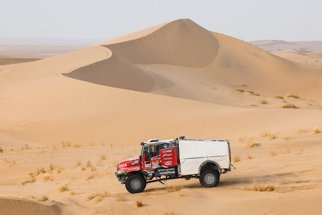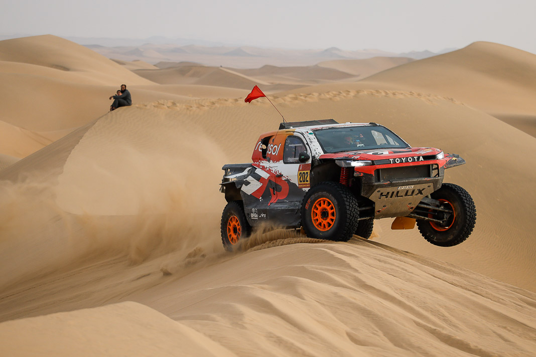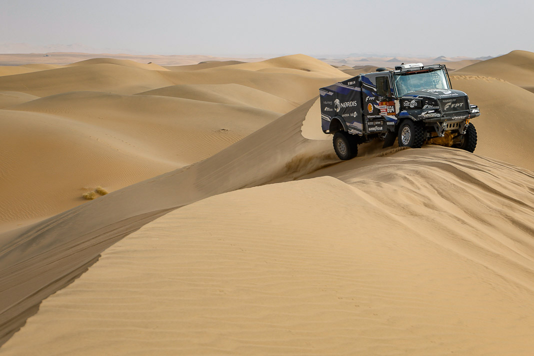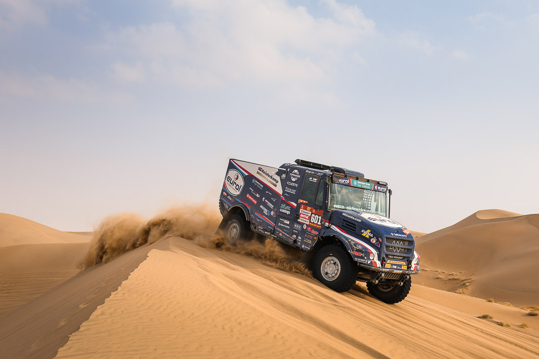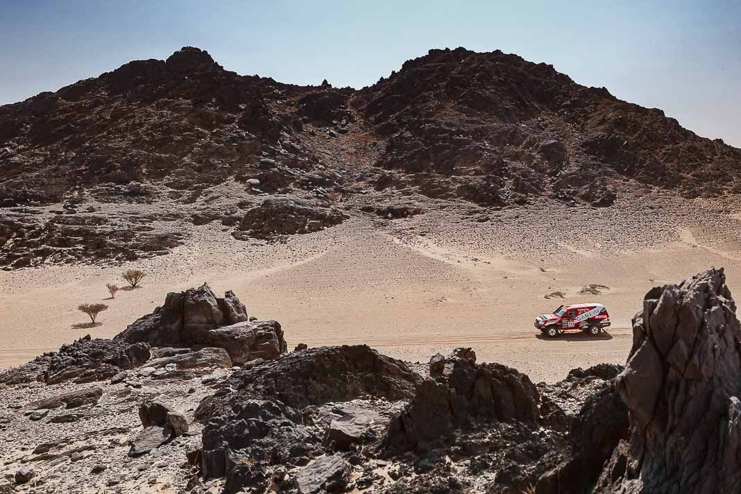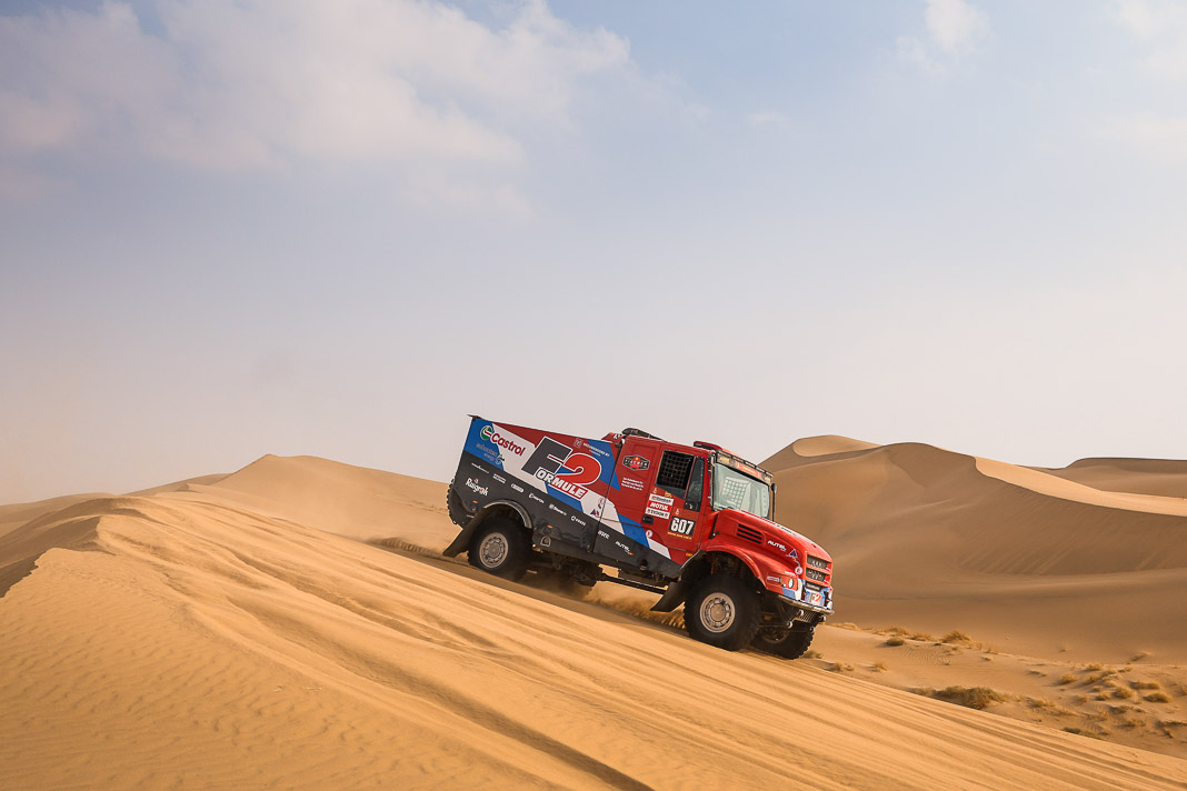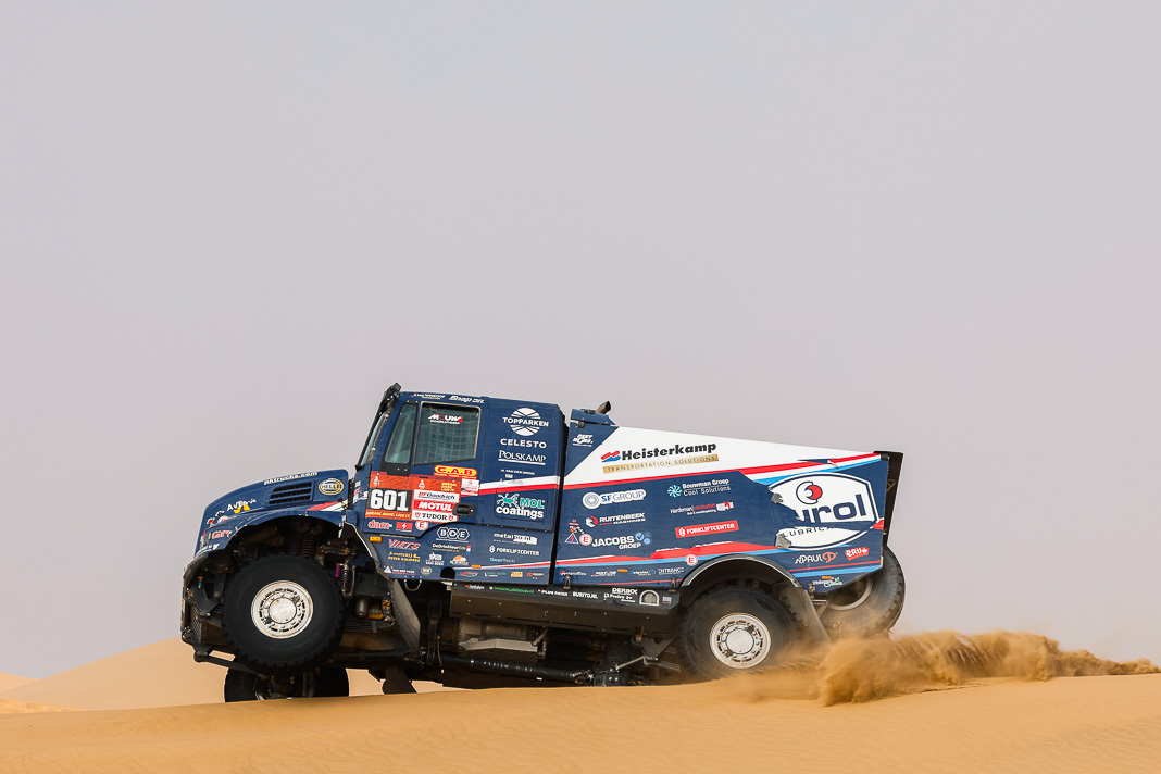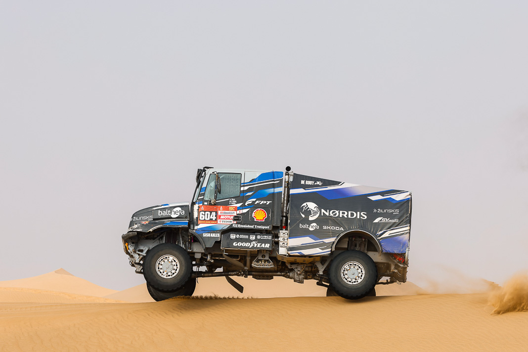 Van den Brink Jr had climbed one rung of the ladder every time he tried, starting with fourth overall in 2023, then third in 2024 and then second in 2025. Can you guess what the young Dutchman’s goal was at the start in Yanbu? The truck title seemed clearly within reach, with two stage wins, the prologue and an overall margin of half an hour over Vaidotas Žala at the start of the day. Yet, sometimes, birthdays are full of woe, as Van den Brink found out today. His 24th year on Earth started with a broken drive shaft at km 16, but that was only the beginning. He tried to bounce back and limit the damage to 45 minutes at km 281, but he ran into trouble again when he got stuck in the sand at km 286 and had to be fished out by his team principal, Martin Macík. The results at the finish dealt a grievous blow to his hopes of victory in Yanbu in three days. He is now third, 35′30″ from the new sheriff in town, Vaidotas Žala.