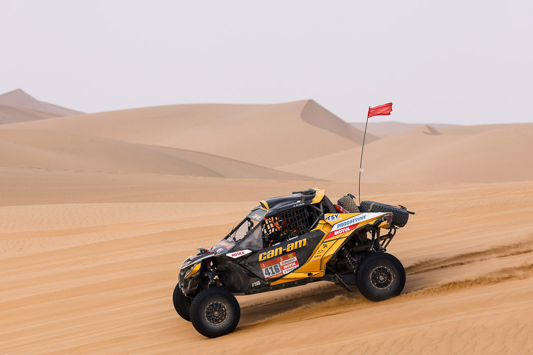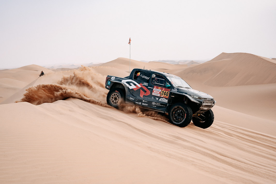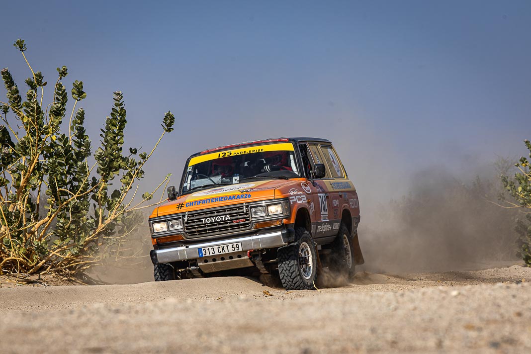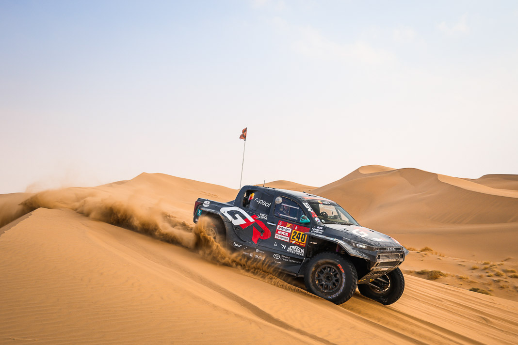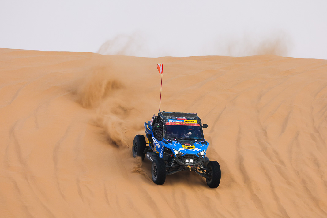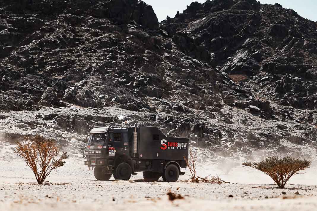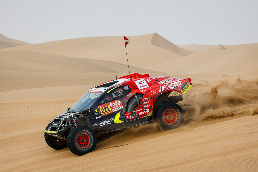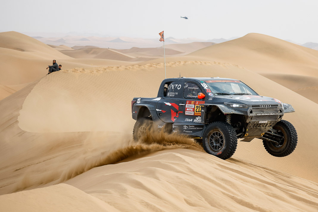 Van den Brink Jr had climbed one rung of the ladder every time he tried, starting with fourth overall in 2023, then third in 2024 and then second in 2025. Can you guess what the young Dutchman’s goal was at the start in Yanbu? The truck title seemed clearly within reach, with two stage wins, the prologue and an overall margin of half an hour over Vaidotas Žala at the start of the day. Yet, sometimes, birthdays are full of woe, as Van den Brink found out today. His 24th year on Earth started with a broken drive shaft at km 16, but that was only the beginning. He tried to bounce back and limit the damage to 45 minutes at km 281, but he ran into trouble again when he got stuck in the sand at km 286 and had to be fished out by his team principal, Martin Macík. The results at the finish dealt a grievous blow to his hopes of victory in Yanbu in three days. He is now third, 35′30″ from the new sheriff in town, Vaidotas Žala.