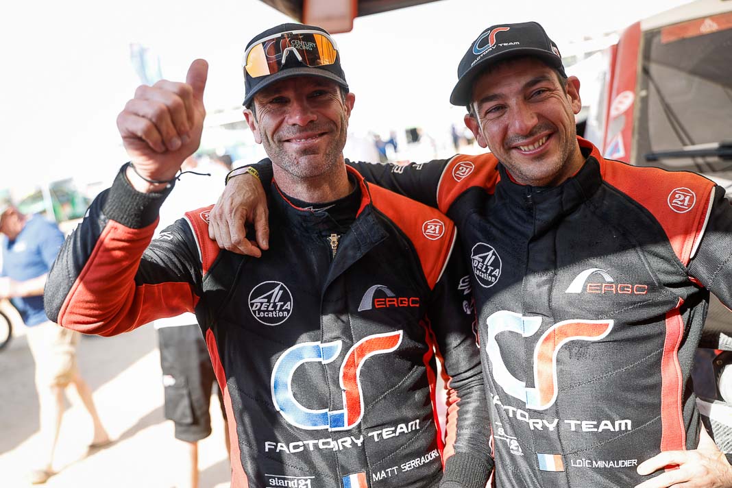 - Mathieu Serradori has more than one trick up his sleeve. When he claimed his maiden stage win back in 2020, he was a minnow who managed to snatch the prize from the great white sharks from time to time. He used to race in a two-wheel-drive car for the sake of Romanticism and quote poetry by Jean-Louis Schlesser. All in all, he was far from the top of the food chain. The driver from the French Riviera has since moved up to a whole new level, with a career-best sixth place overall last season after switching to a 4×4 T1 in his CR7. His performance this year has been a mixed bag, but today he hit the jackpot on the 420 km special to Bisha, defeating Al Attiyah by over 6 minutes and rocketing up four places in the overall, where he now sits fifth, 33 minutes from the Qatari… Swimming with the sharks!