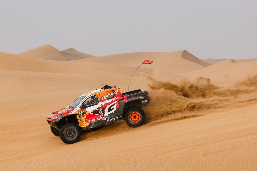 - In the fight for the title, the big winner of the marathon stage was Nasser Al Attiyah, who stamped his authority on the dunes and moved back into the overall lead while leaving the competition in the dust. 1′10″ separated the provisional top 3 yesterday. The Dacia driver took that and turned it into a 12-minute gap over his closest rival, Henk Lategan, who ran out of fuel and made a navigation blunder, and 12′50″ over Nani Roma, who stayed on the provisional podium.