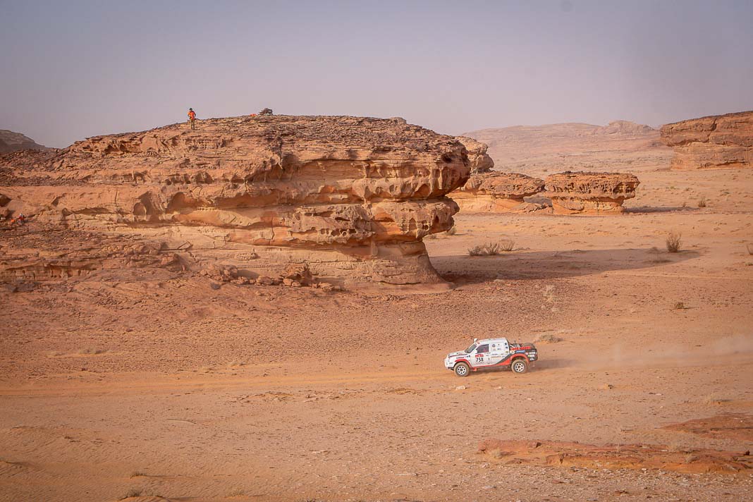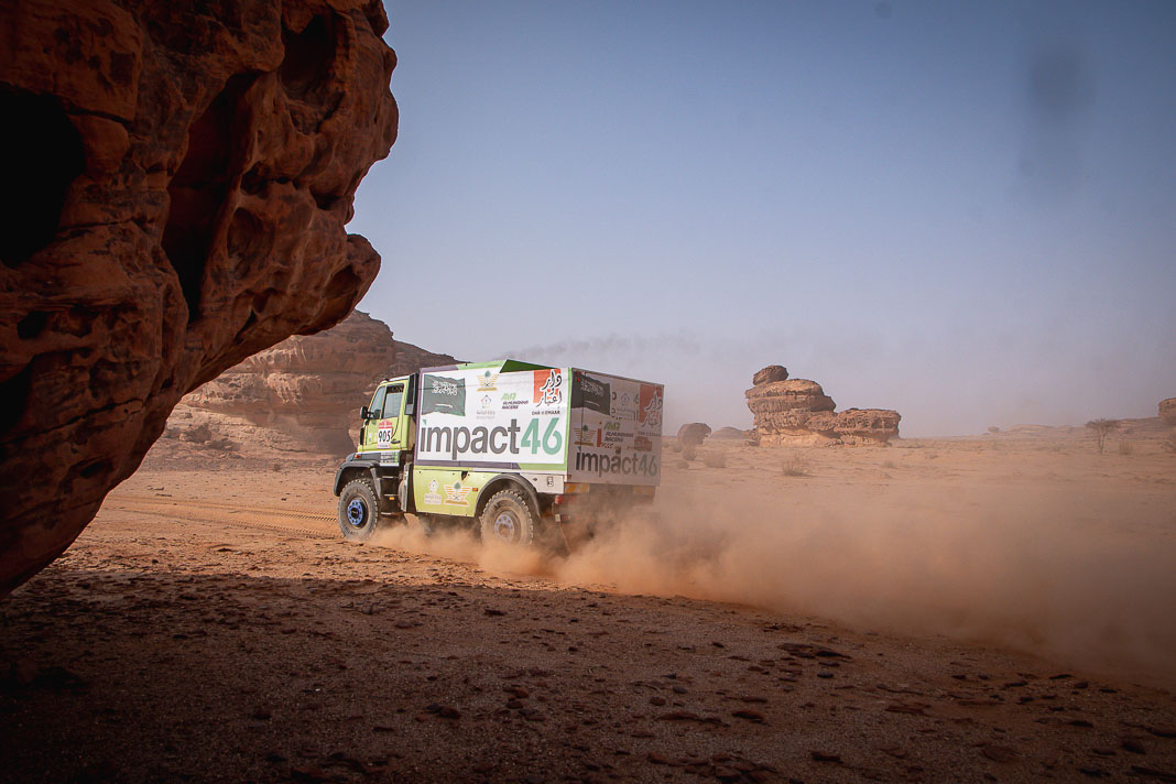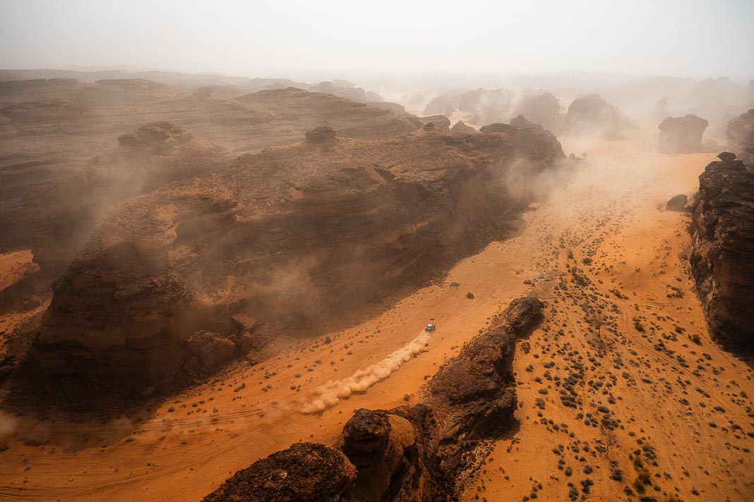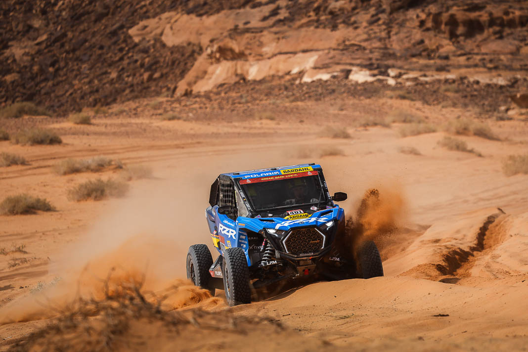Before yesterday, fortune seemed to be favouring the man whose inner force demands the respect of the entire bivouac. The Mévius-Baumel duo won stage 1 in Yanbu, but today in AlUla they were much less fortunate. The Belgian has drawn a premature line through their third objective: