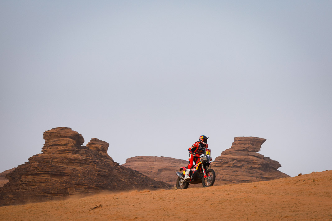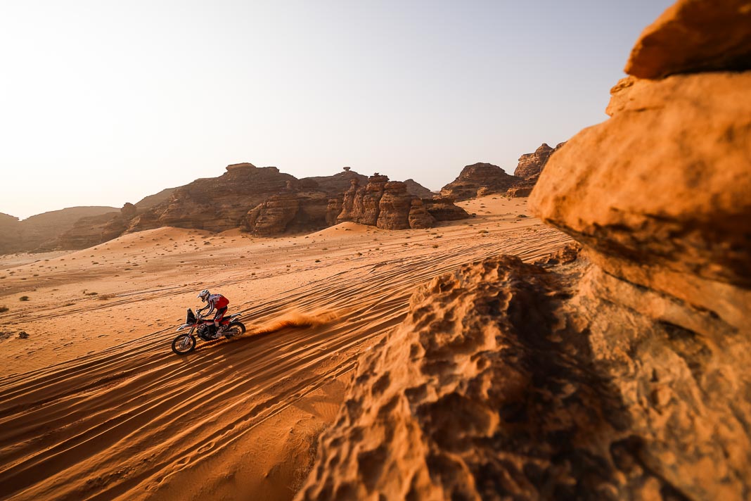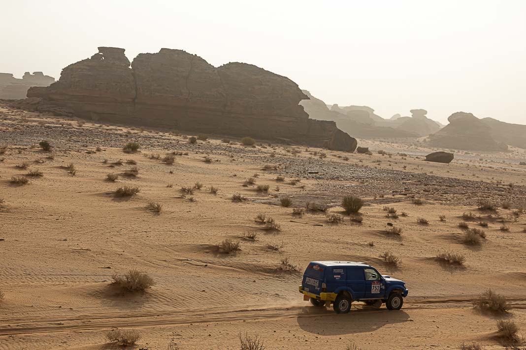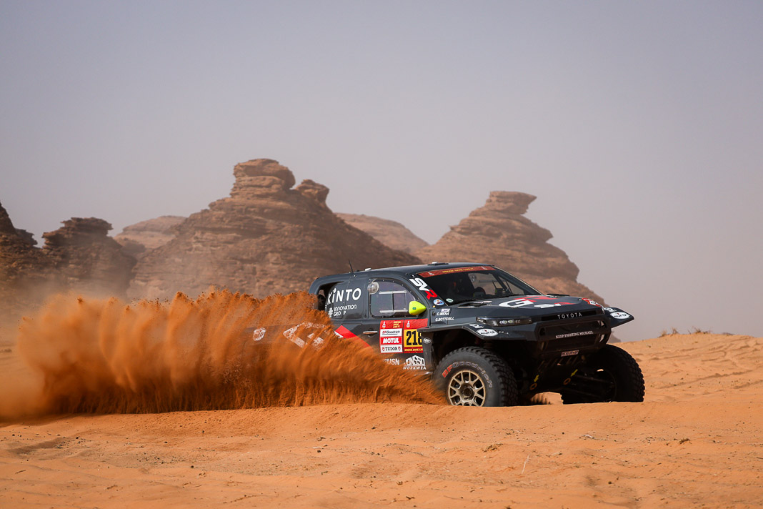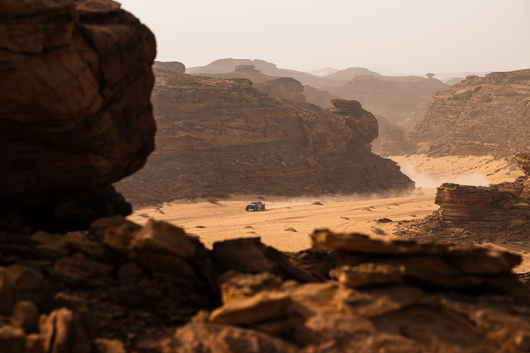 Before yesterday, fortune seemed to be favouring the man whose inner force demands the respect of the entire bivouac. The Mévius-Baumel duo won stage 1 in Yanbu, but today in AlUla they were much less fortunate. The Belgian has drawn a premature line through their third objective: