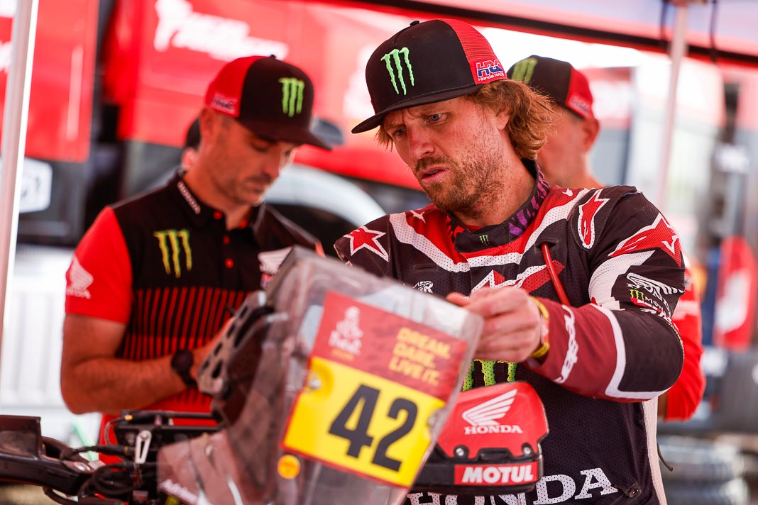 - The Australian was obliged to open the way for much of the 421 km against the clock on the programme. The only other rider to join him on the tracks was Ricky Brabec, who is proving to be another man in form at the start of this Dakar. Brabec has moved into second place in the general rankings, 1’07’’ behind Sanders, confirming the strength of the Honda team.