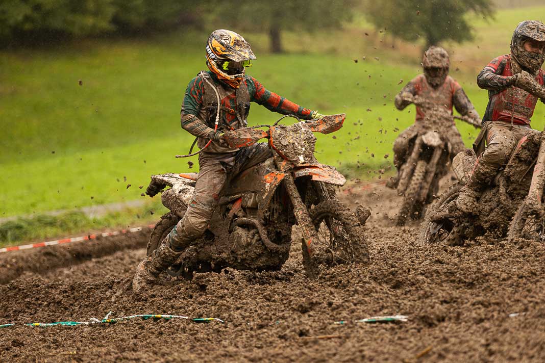 In the premier class XC Pro, Chris Gundermann (Finkmoto Holzgerlingen, KTM) prevailed after a thrilling duel with Yanik Spachmüller (Kadelack Gas Gas / MC Augsburg, Gas Gas). Spachmüller had put a lot of pressure on at the beginning, but after the pit stop, Gundermann was able to increase the pace and secure a lead of a good 30 seconds. Sascha Ströbele (ZweiUmbach Racing) finished third by a clear margin, followed by Robert Scharl (Team Mxtreme Racing, Fantic) and Mike Wiedemann (Wiedemann Motorsports/Yamaha Deutschland, Yamaha).