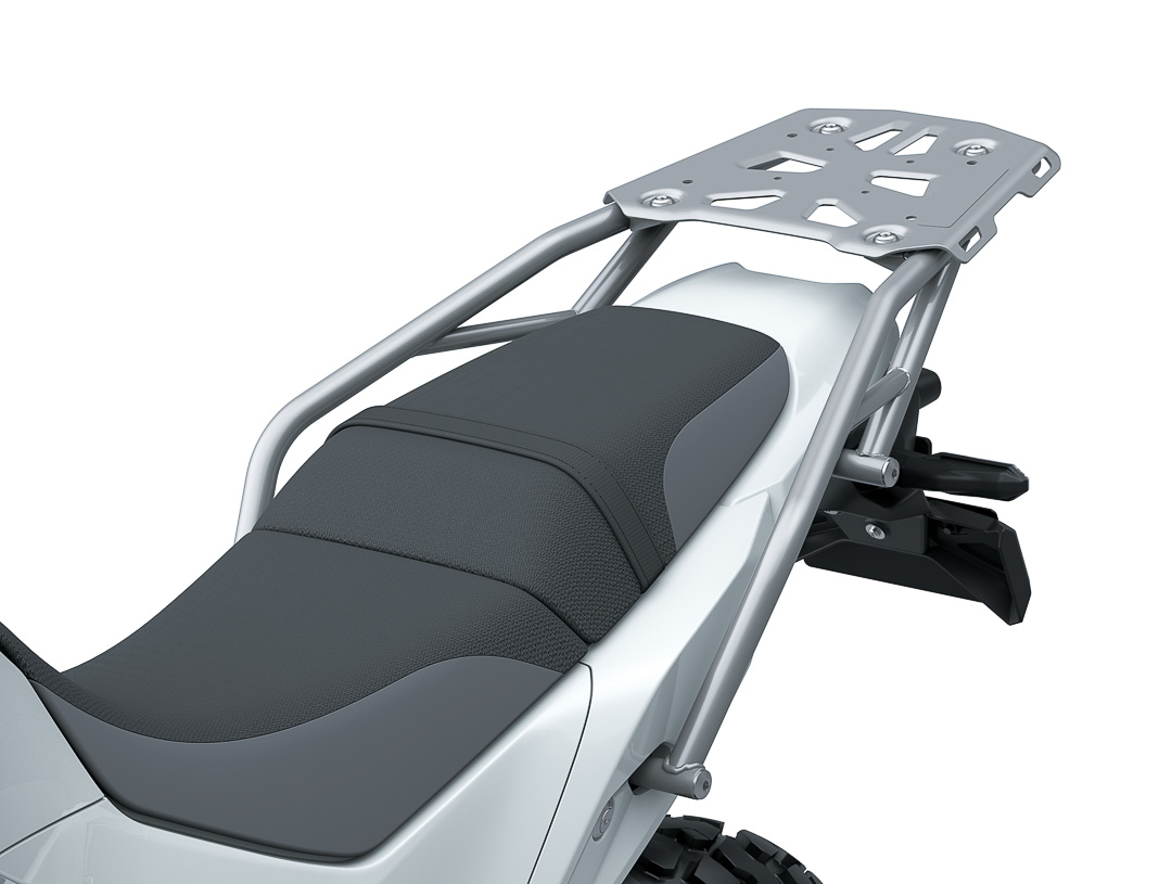 Optisch ansprechend fällt sofort das Gitterrohr ähnliche Rahmenkonzept inklusive angeschraubter Rahmenunterzüge sowie die besondere Krümmerverlegung auf. Letztere kostet auf Anhieb Bodenfreiheit. Auch die dreier Scheinwerfer-Kombination ist ein interessantes Feature. Warum man das Hinterrad nicht als 18-Zoll-Version ausgeführt hat, hängt vermutlich mit der größeren verfügbaren Reifenvielfalt der 17-Zöller zusammen. Mittlerweile hat sich das 18-Zoll-Angebot aber enorm vergrößert. Oder will man damit die Ausrichtung hinsichtlich bevorzugtem leichtem Offroad-Einsatz und primären Straßenbetrieb mit entspannter Reise tauglicher Sitzposition nachdrücklich unterstreichen? Alles reine Vermutungen. Die Hintergründe dafür werden sicherlich bei den bevorstehenden Präsentationen erläutert.